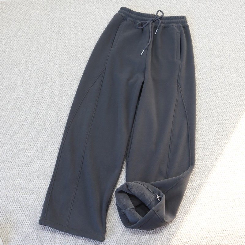 可束脚休闲裤 女士秋冬加绒弯刀阔腿裤 女宽松显瘦慵懒感高腰运动裤