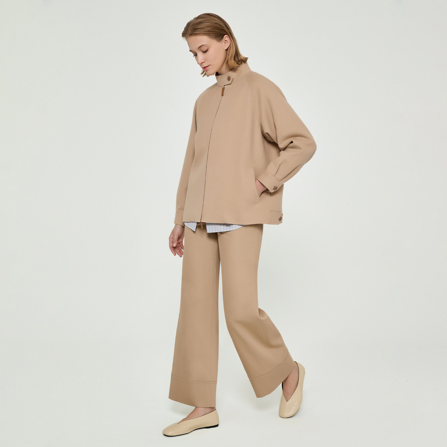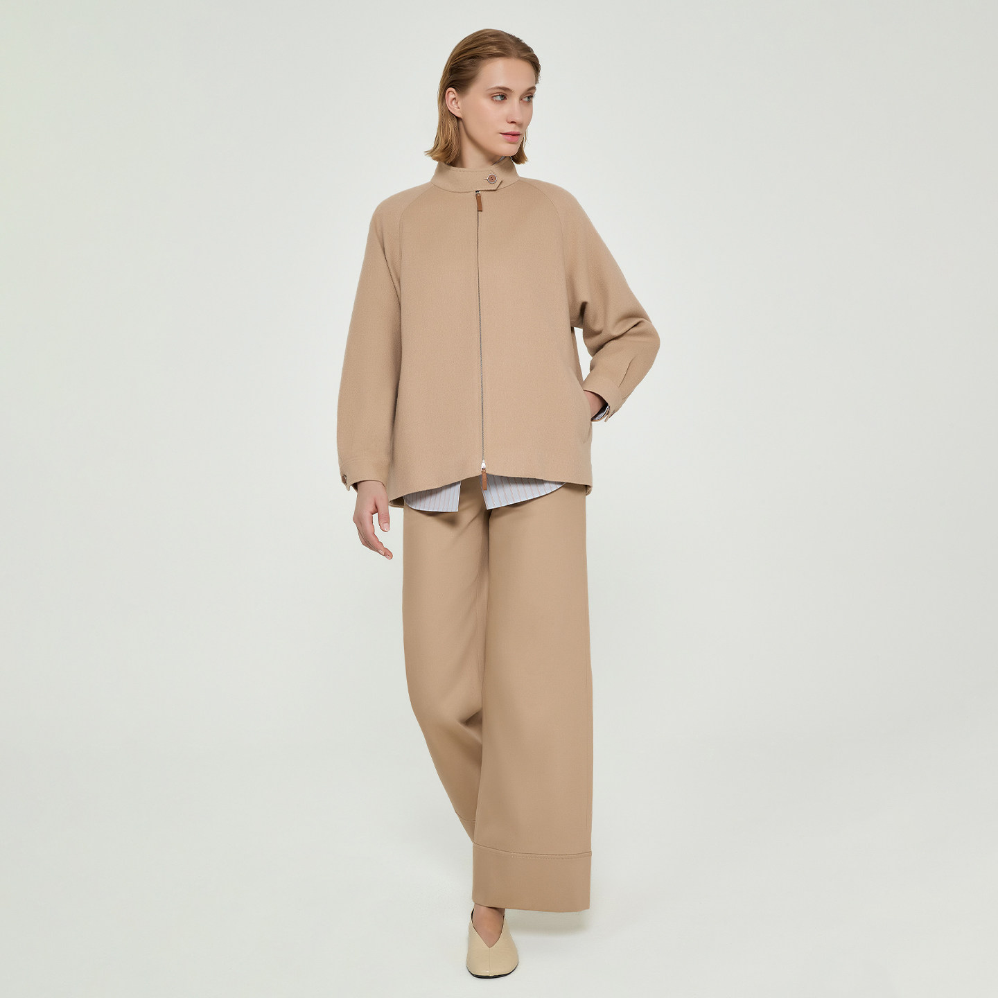 拉飞逸驼绒拉链前襟立领飞行员夹克 LAFAYETTE148 26早春新款