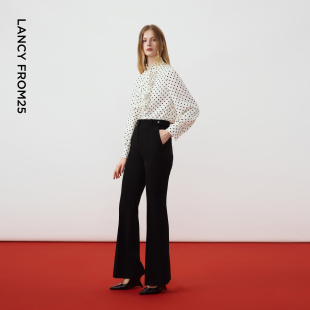 MONEY 子2026年春季 HONG 知性优雅裤 新款 朗姿梦马烫金微喇长裤