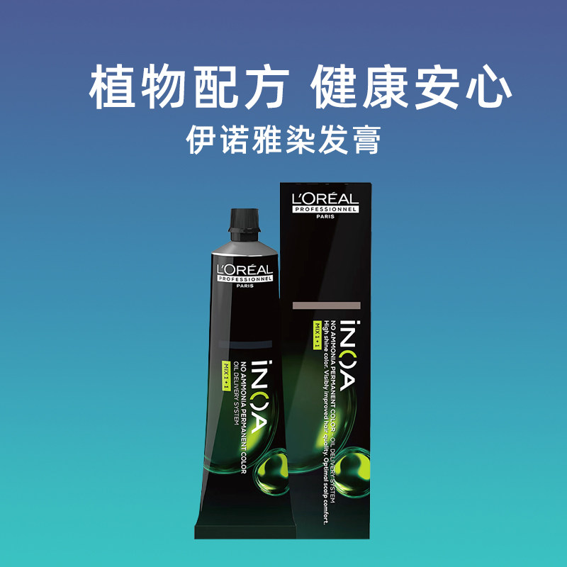 2植物染发 欧莱雅伊诺雅染发膏60g 2支装 套盒含双氧乳 自营