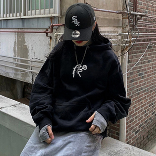 美式 加绒加厚保暖青少年宽松外套hiphop休闲百搭潮 连帽卫衣男女款