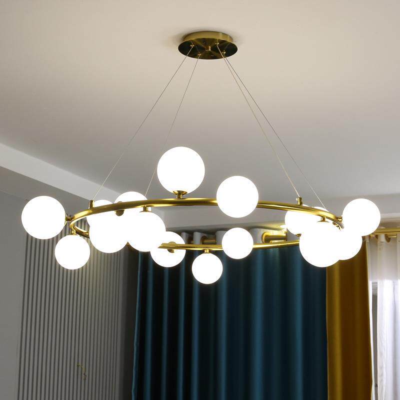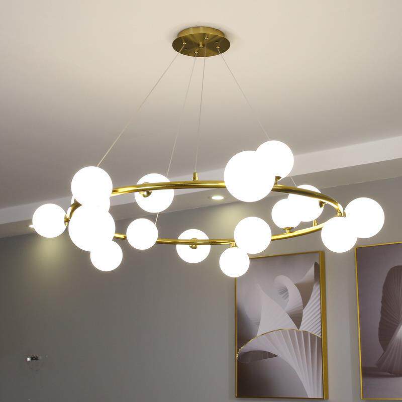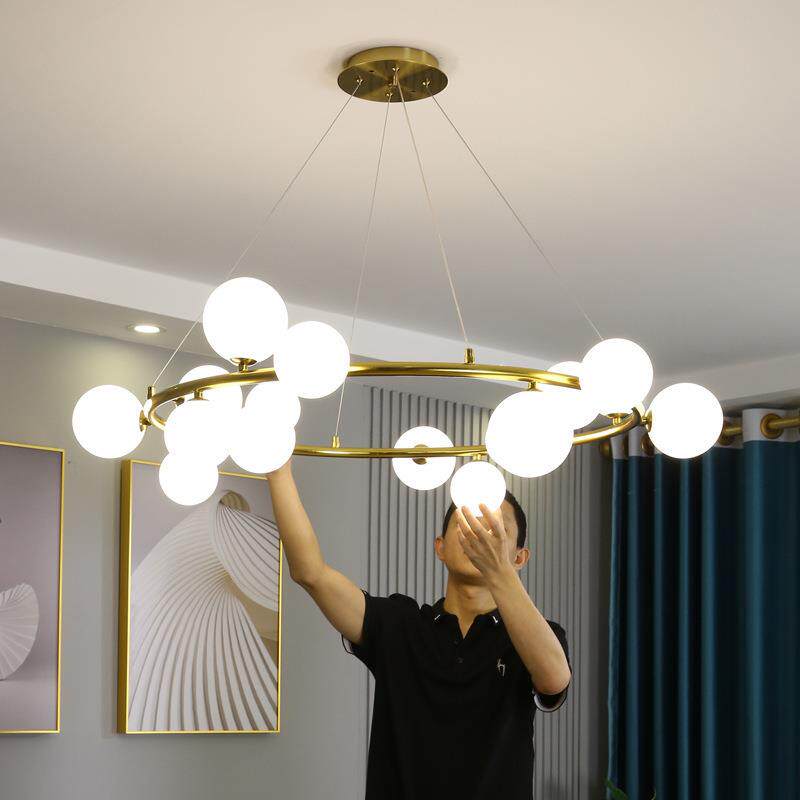 客厅吊灯简约现代别墅金色圆环形魔豆灯大厅餐厅卧室北欧轻奢灯具