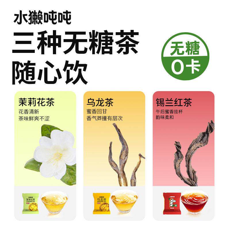 tǎ 水獭吨吨 无糖茶茉莉花茶普洱冻干自冷泡饮品茶 1盒送杯子