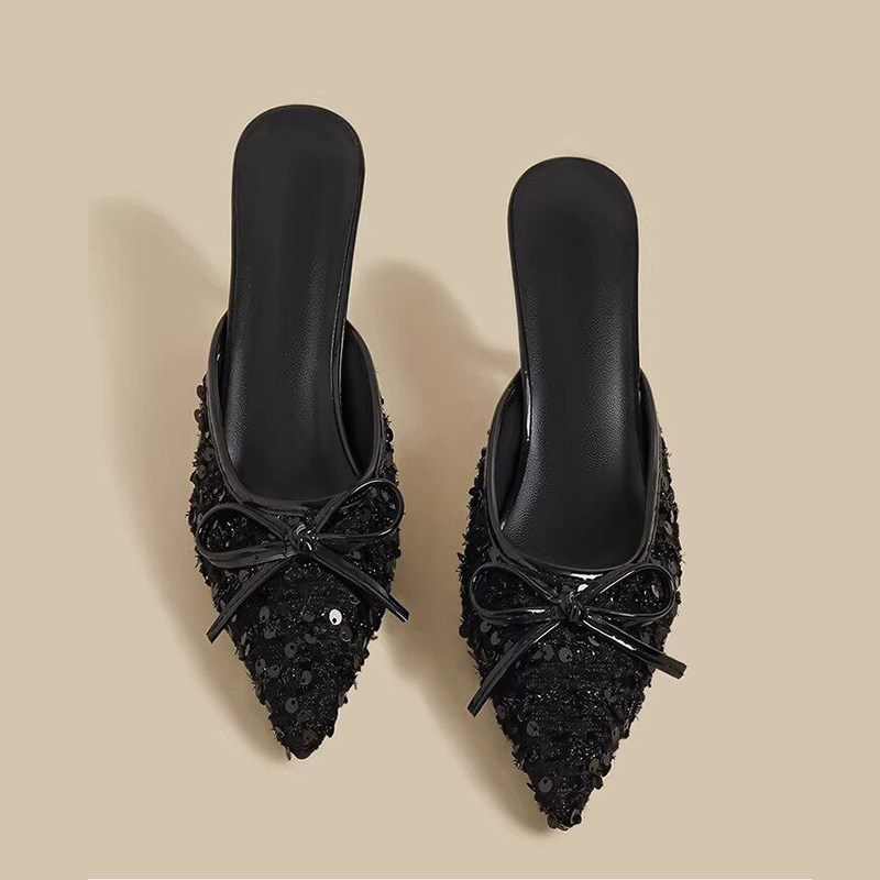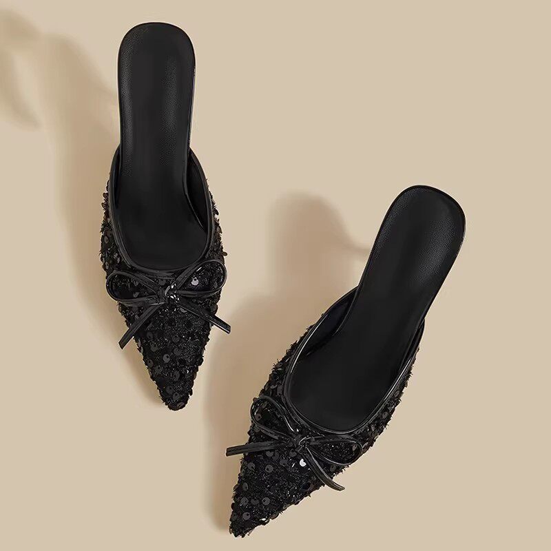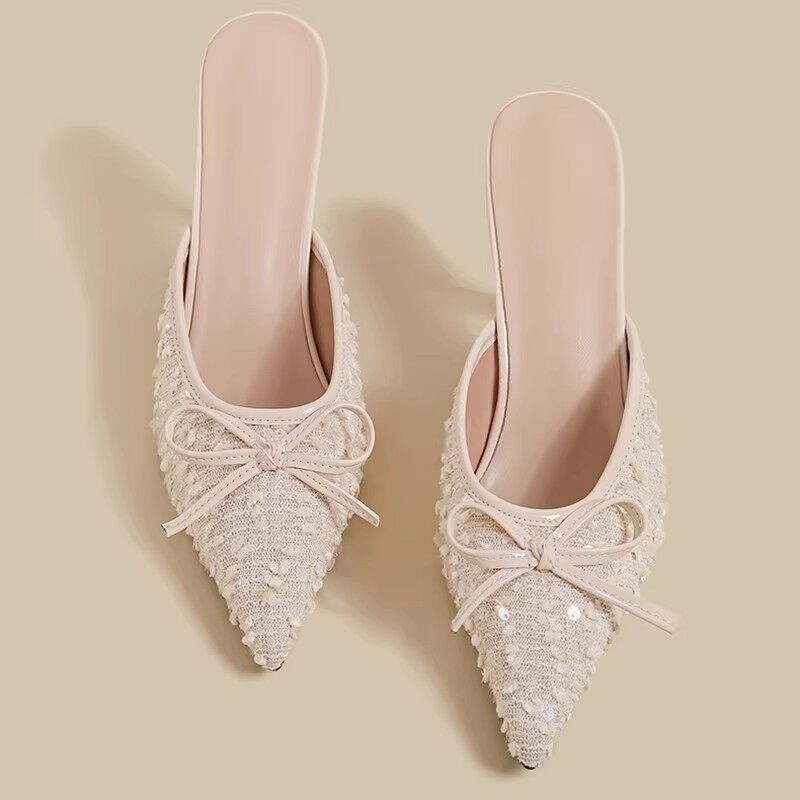 细跟尖头小香风气质拖鞋 包头半拖鞋 新款 子2026年夏季 女外穿高跟鞋