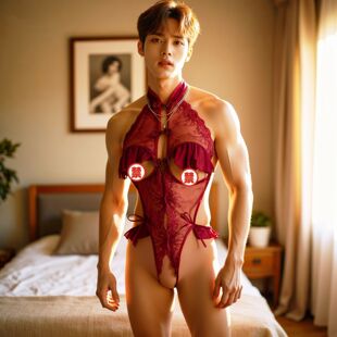 男士 肚兜男娘制服红色性感睡衣 黑色蕾丝制服男m衣服qq衣物男士