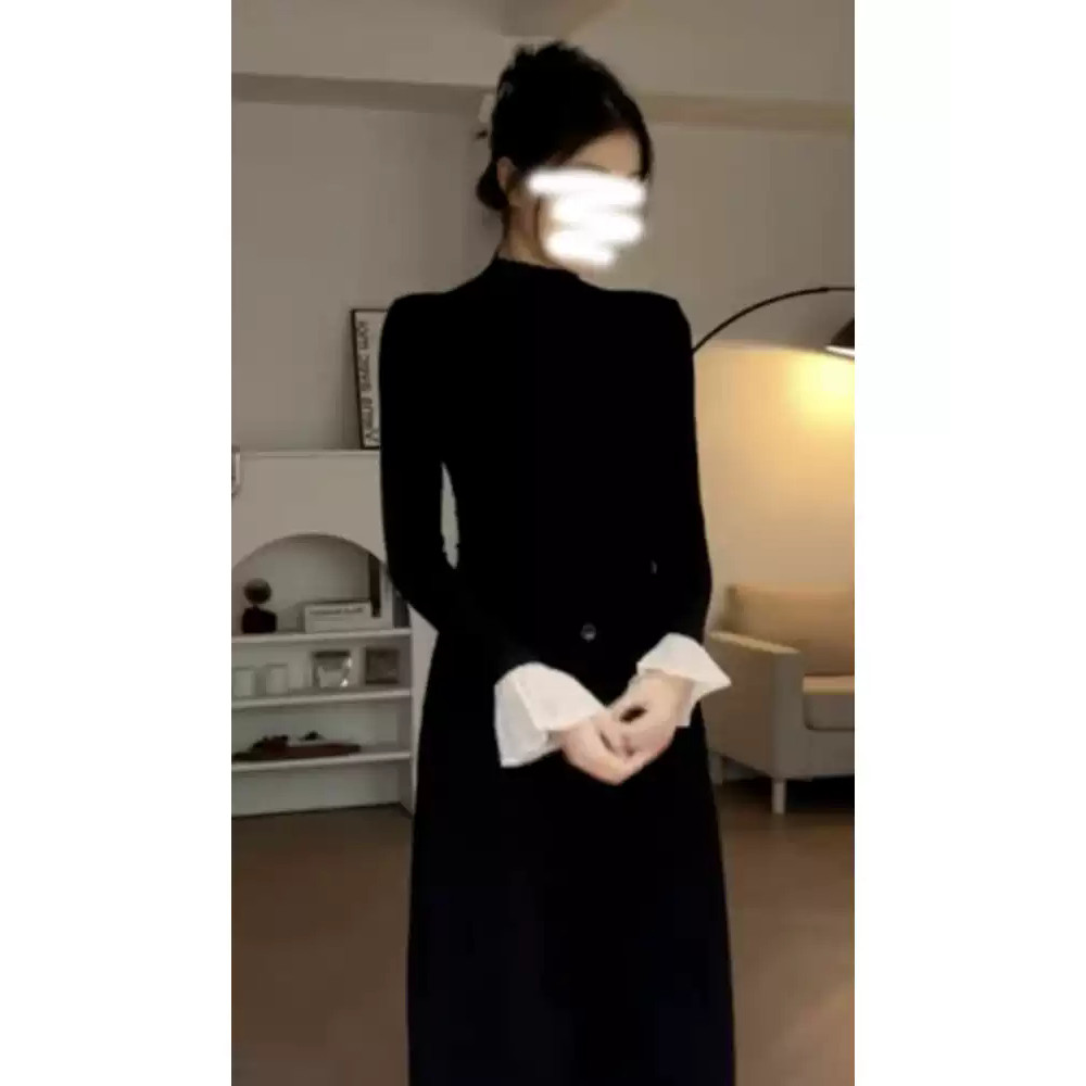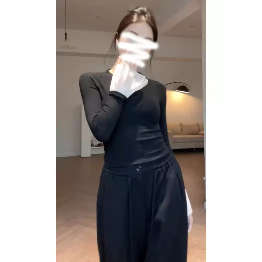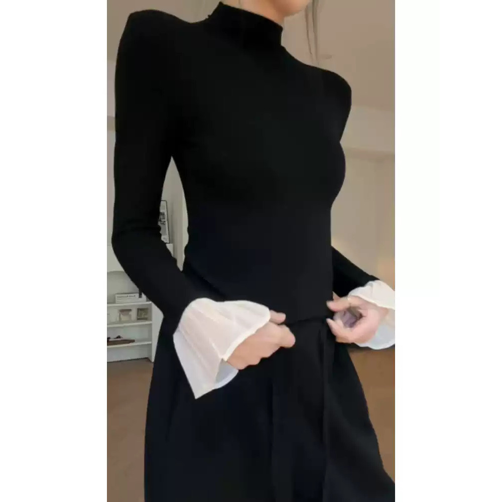 1螺纹260g 秋冬装 ELOF708 女蕾丝拼接喇叭袖 官图 打底衫 V领 707