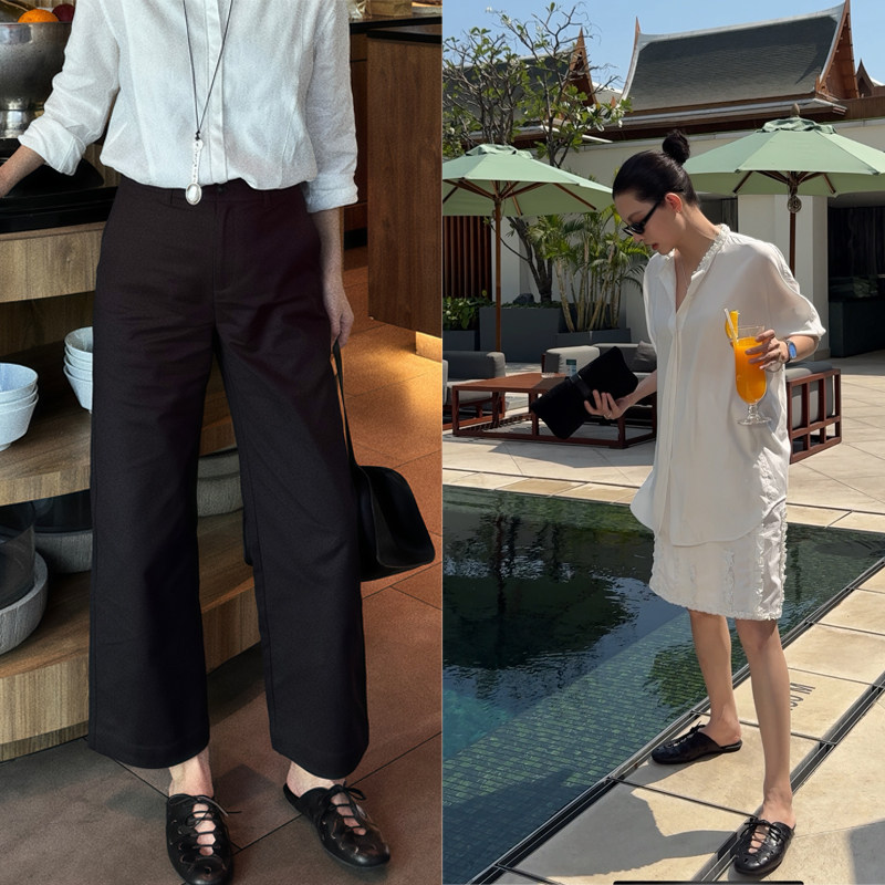 HWXZ8626 手工镂空系带羊皮包头一脚蹬拖鞋 THESOONG 复古随性