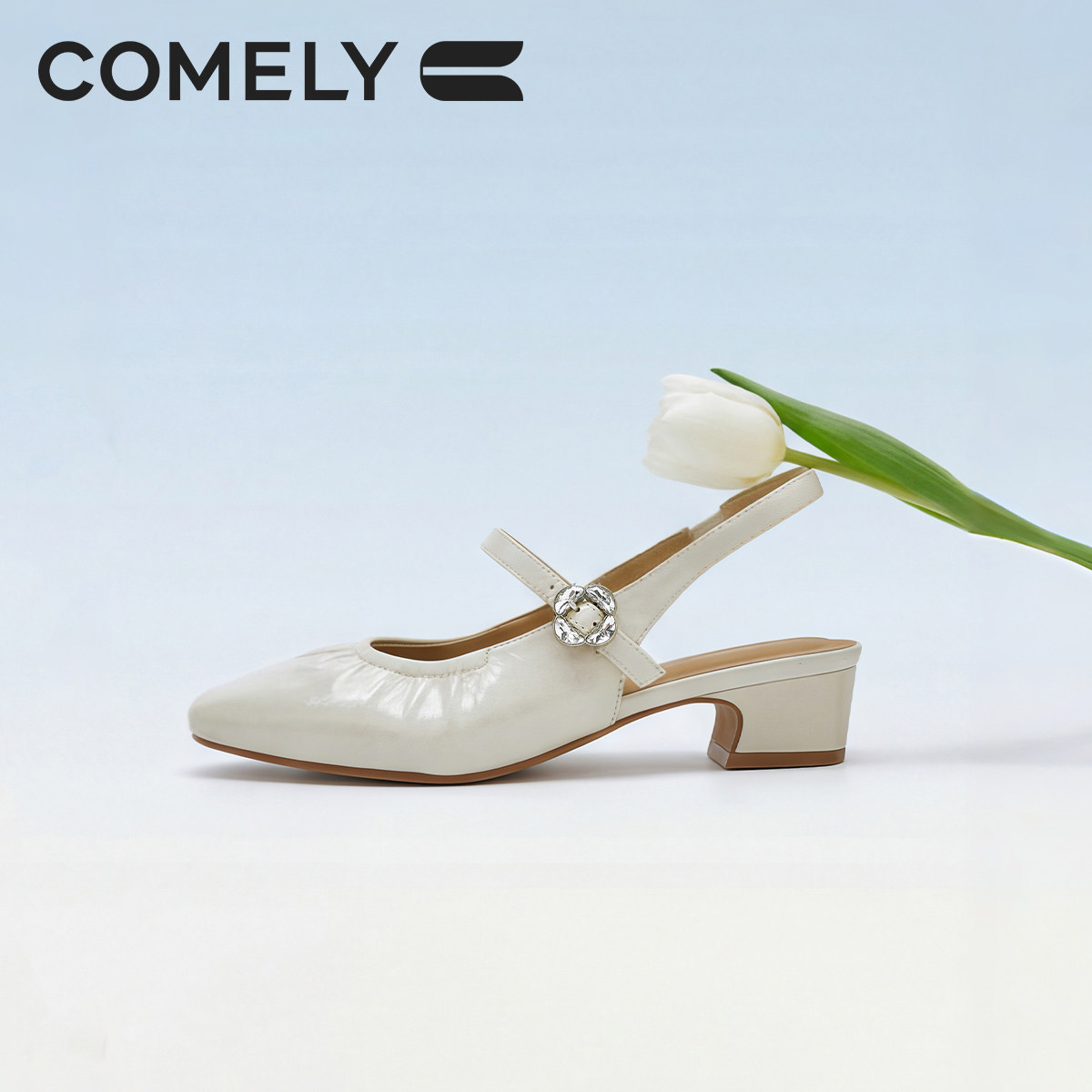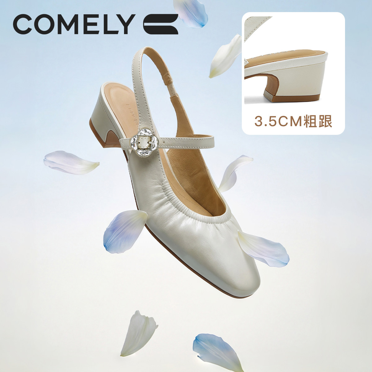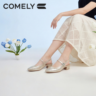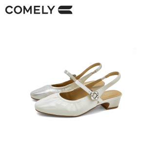 商场同款 康莉牛皮包头凉鞋 中低跟后空单鞋 新款 62130 女2026夏季