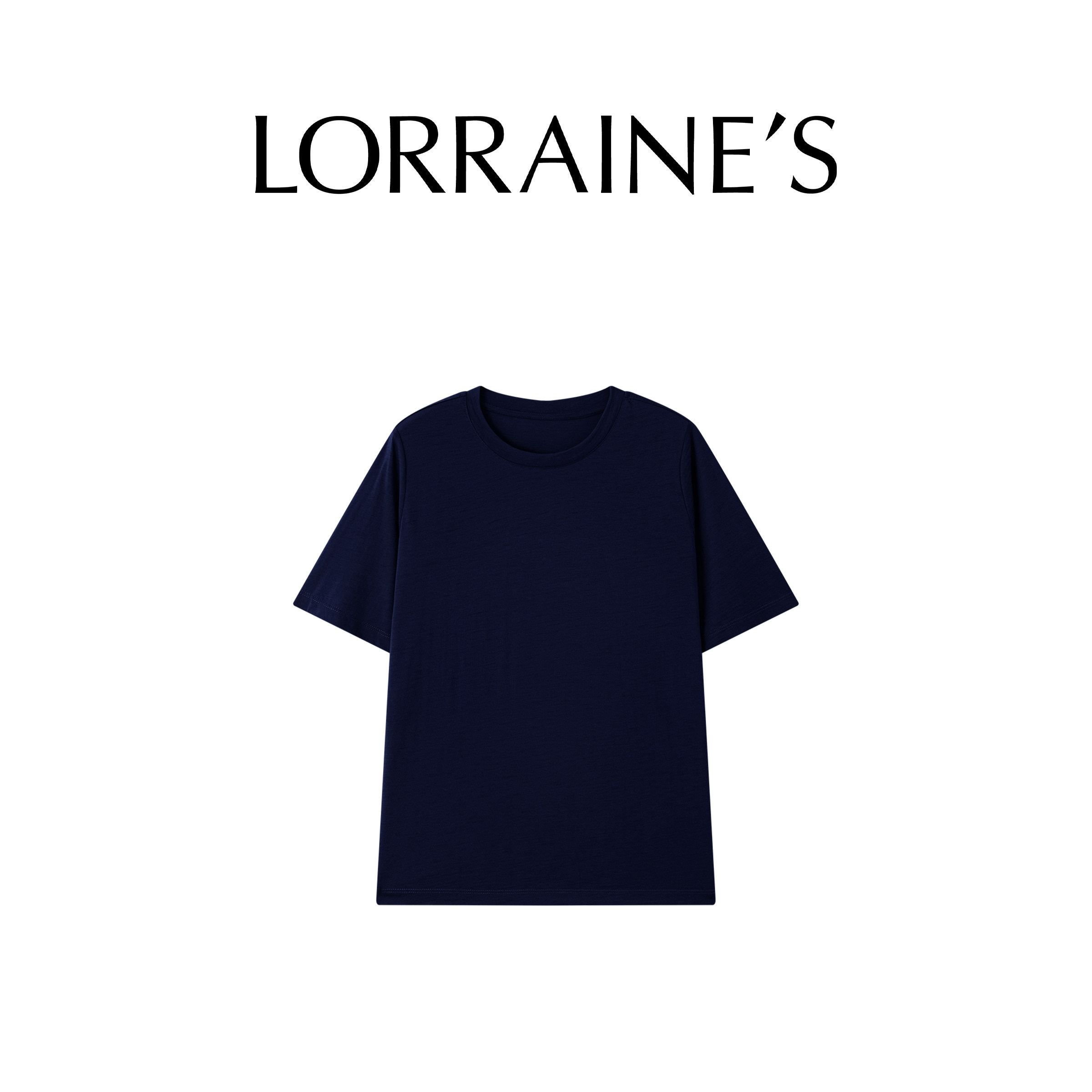 LORRAINES新款 定纺60支100超细美利奴羊毛0压感圆领T恤 老钱T