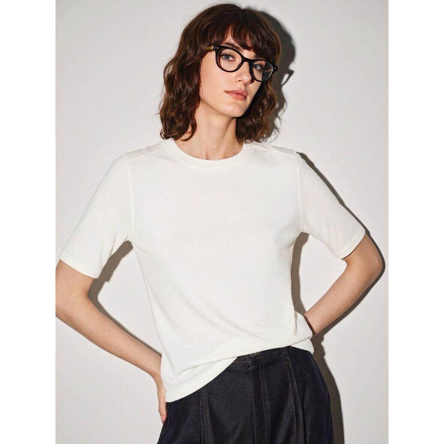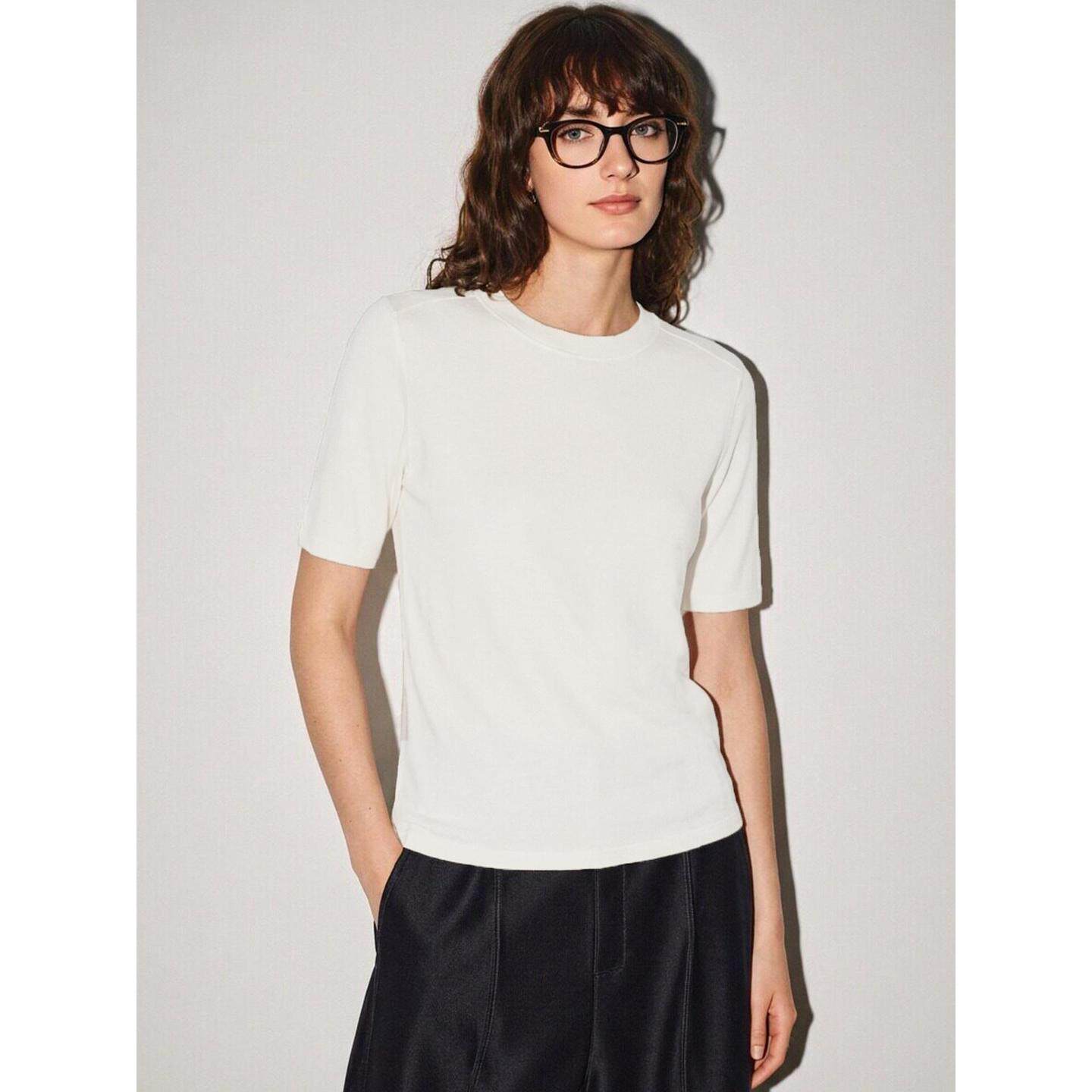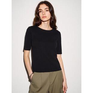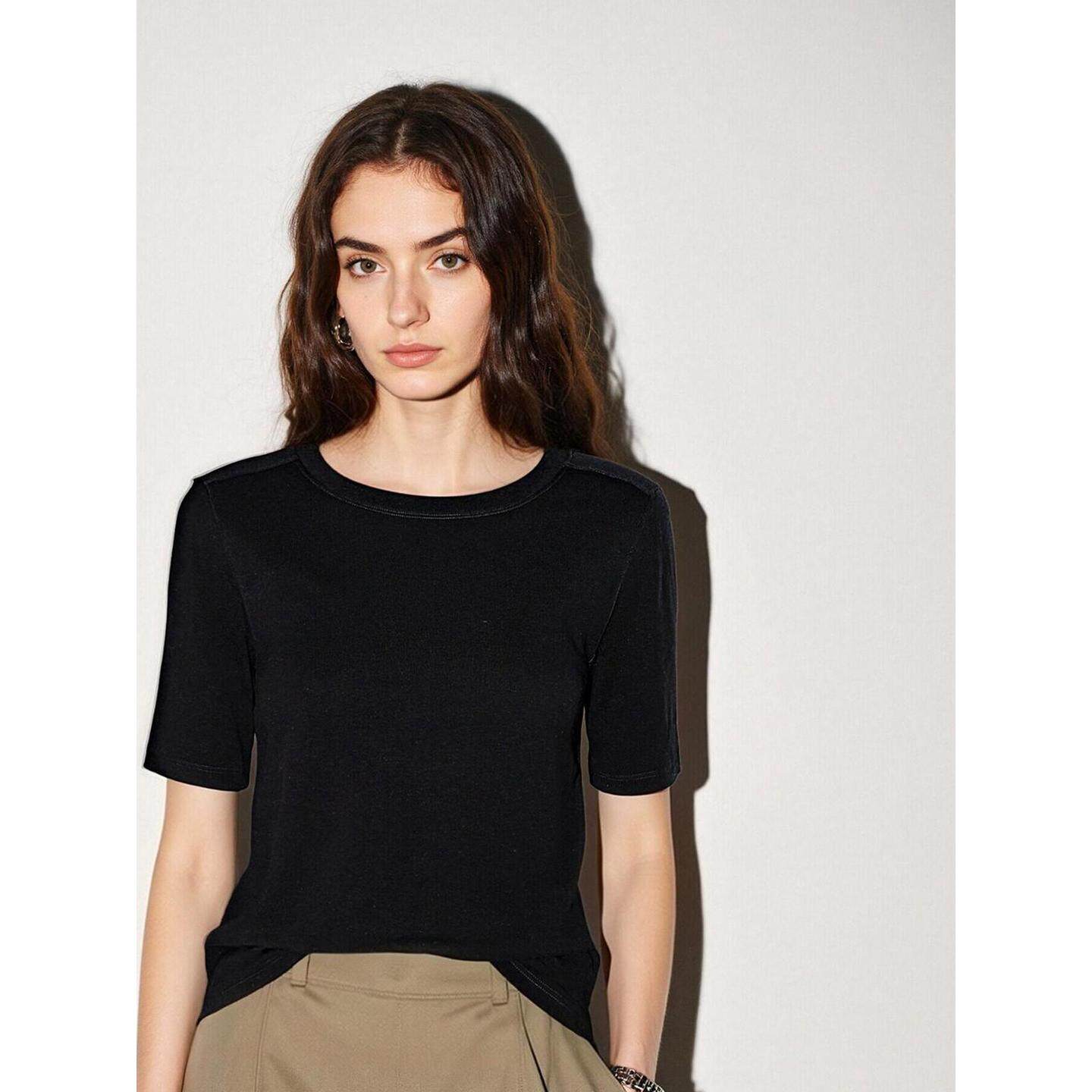 显瘦冰丝半袖 Basic T恤女夏季 百家好黑色正肩天丝短袖 上衣 House