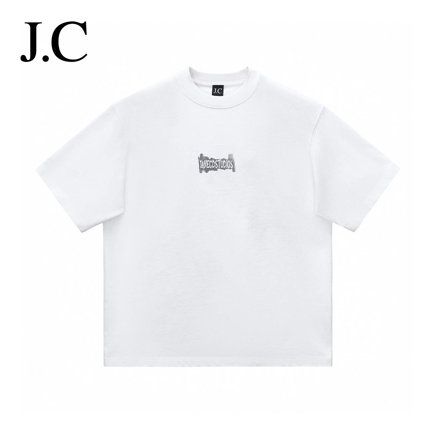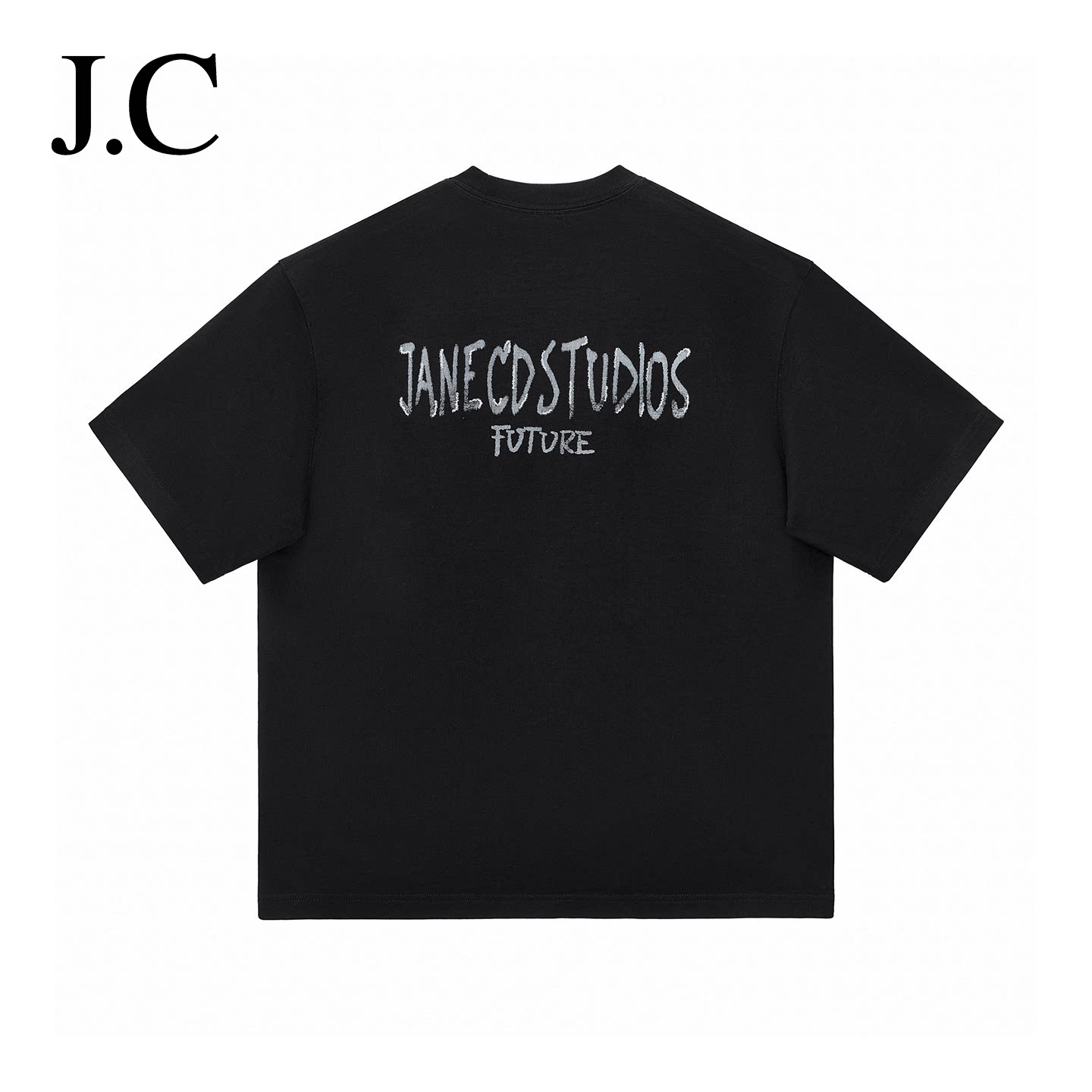 上衣新款 J.C T恤380克纯棉刺绣印花宽松潮牌男装 短袖 简裁重磅美式