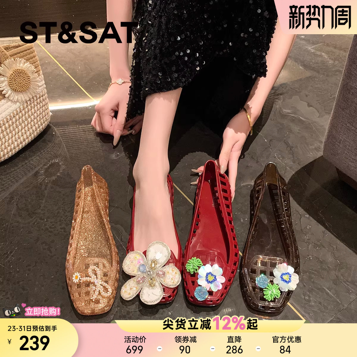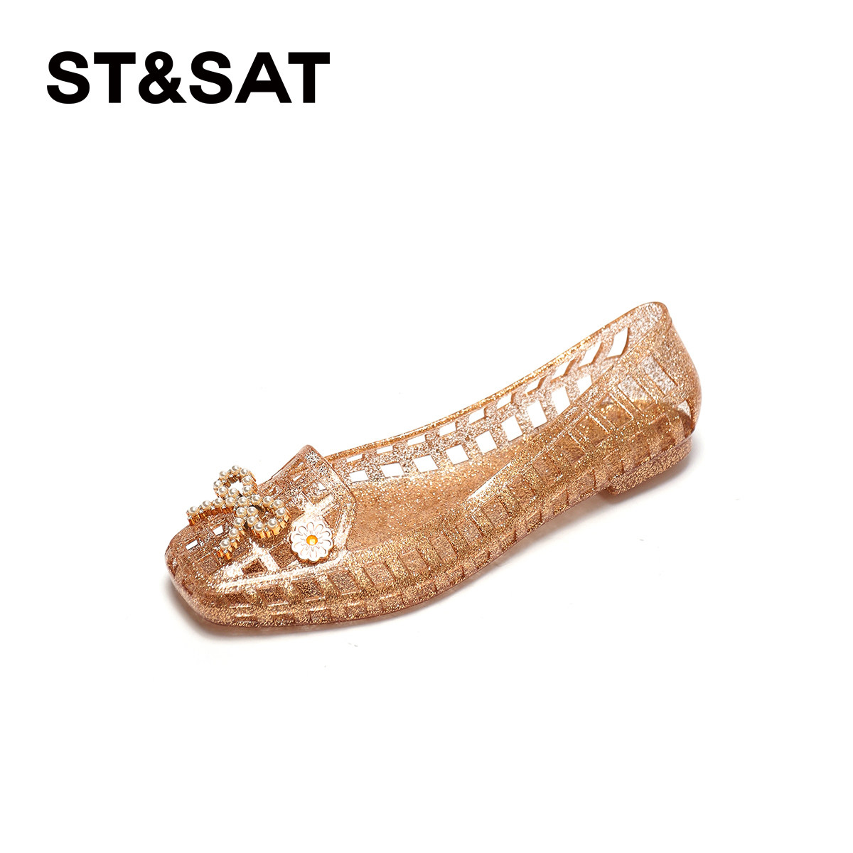 单鞋 星期六法式 平底一脚蹬镂空罗马凉鞋 女2026新款 软底水晶果冻鞋