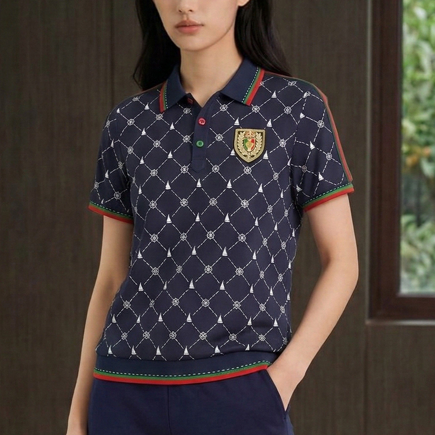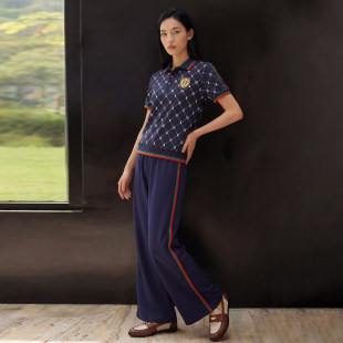 子两件套装 上衣T恤松紧腰直筒裤 蓝色翻领短袖 马天奴2026春夏新款