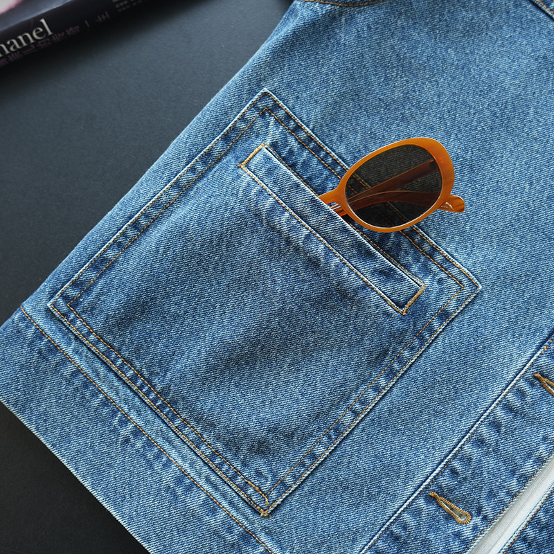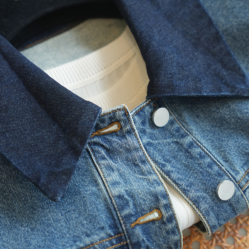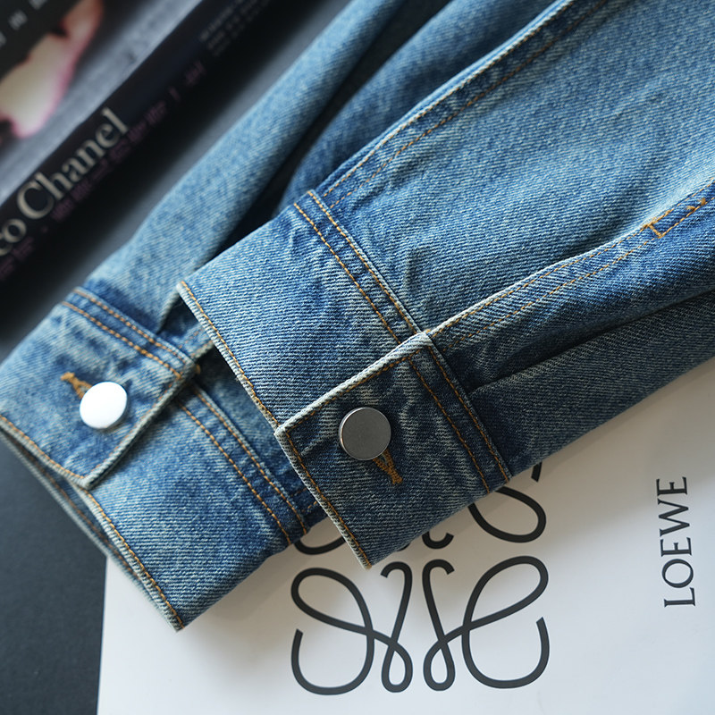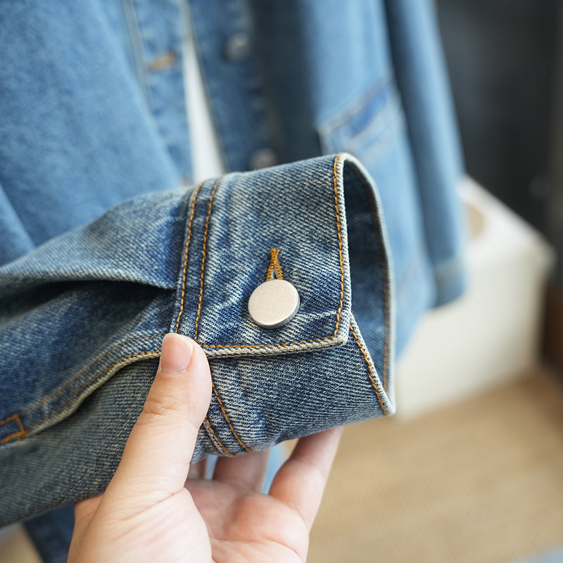 新款 休闲夹克女牛仔外套春季 潮A104R 复古纯棉撞色翻领短款 虫小小