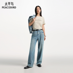 显瘦窄版 太平鸟高腰阔腿牛仔裤 直筒牛仔裤 达播专属
