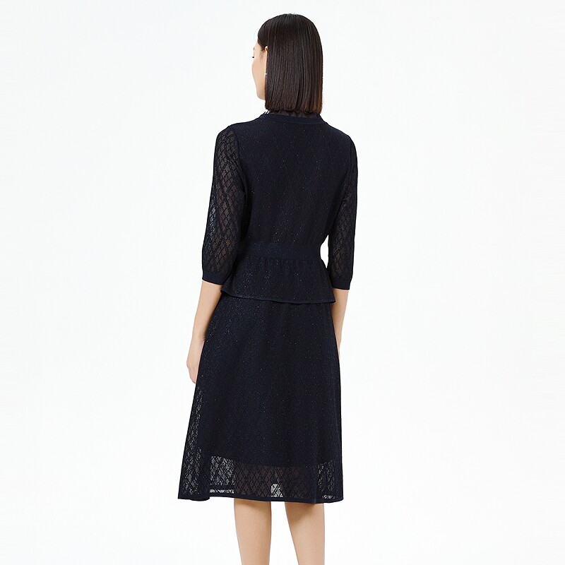 NAERSI娜尔思星闪蕾丝花边优雅领边叠透感连衣裙26年夏季 裙子 新款