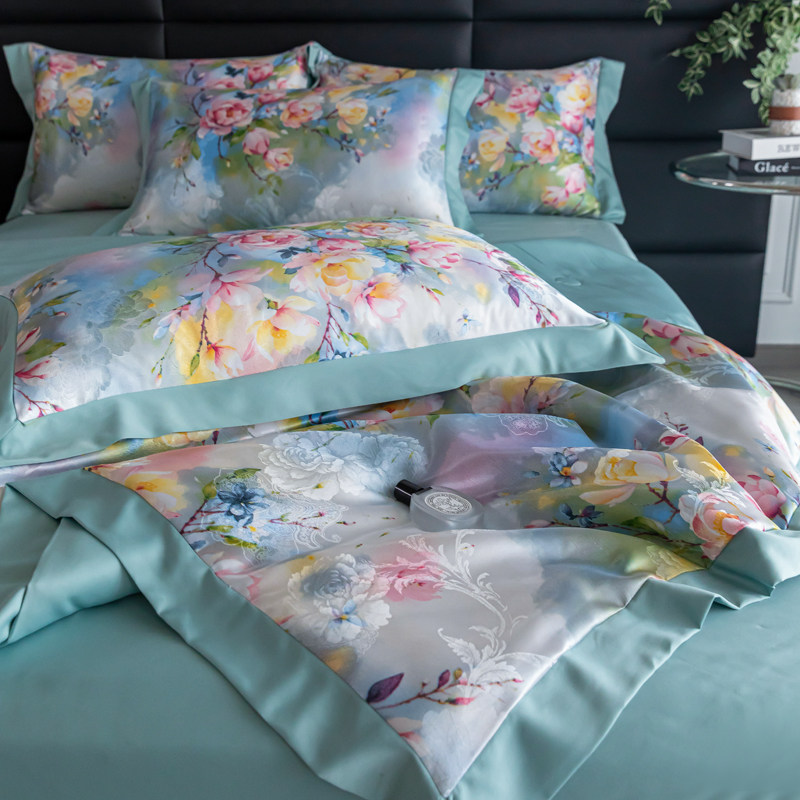 2026新款 水洗真丝提花加印花贡缎提花夏被夏凉被空调被夏被四件套