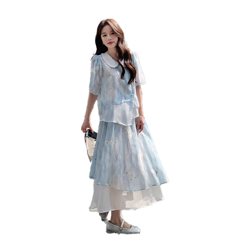 夏季 1816 新品 娃娃领2C285 P145K218 扎染绣花减龄仙女裙套装 爆款