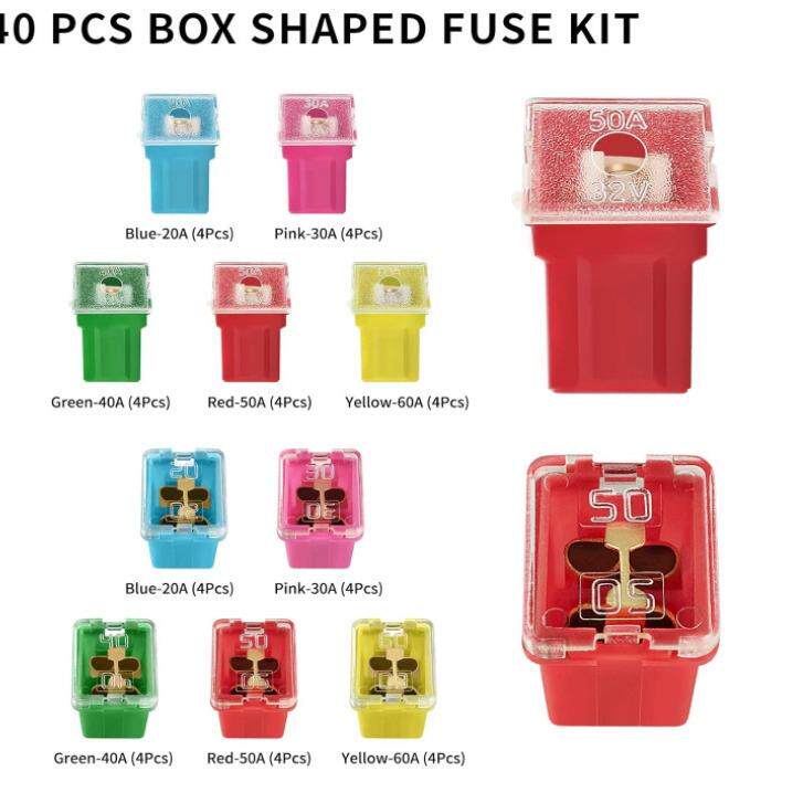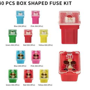 40PCS汽车方形保险丝套件低高剖面盒形保险丝20A30A40A50A60A