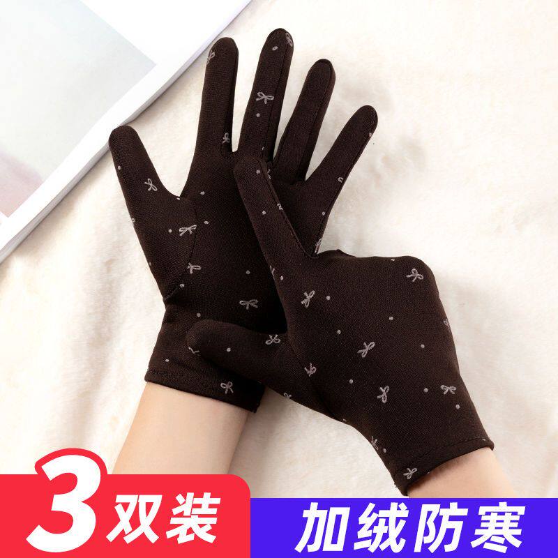 加绒手套保暖女秋冬季 防风加绒厚触屏防寒户外电动车骑行保暖手套