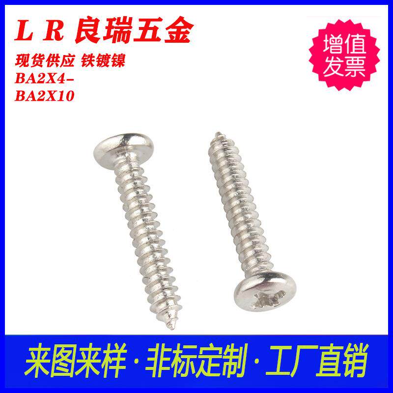 BA大圆头扁头·自攻螺丝镀镍BA2X4 BA2X10白锌圆头十字自攻螺丝