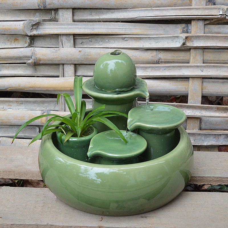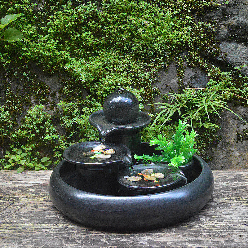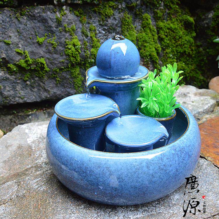 陶瓷喷泉流水工艺品摆设新房客厅家居水景加O湿器装 饰礼品创意摆