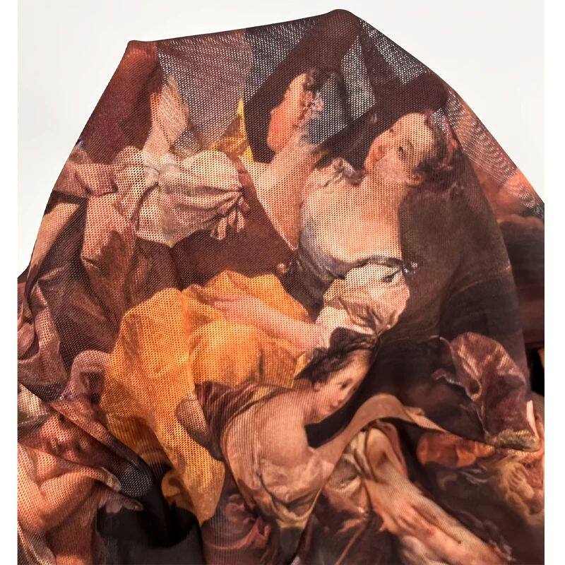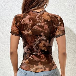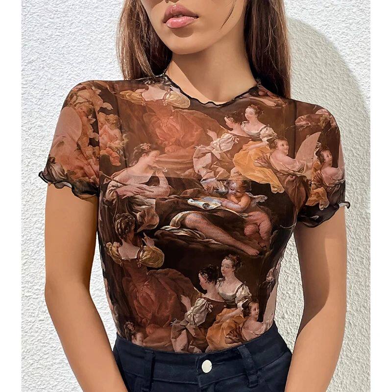 Crop Mesh Short Print Women Angel Top Summer Sleeve Y2k