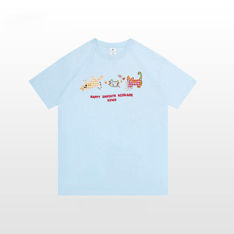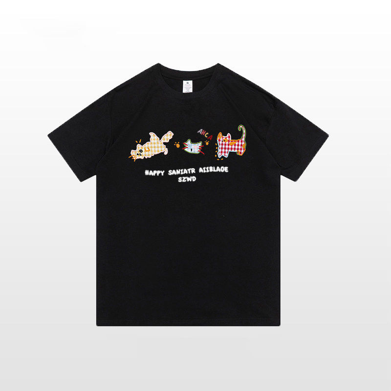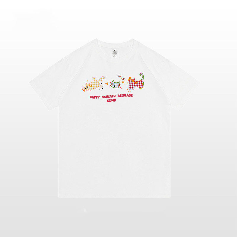 宽松慵懒风设计感小众纯棉上衣潮 t恤女夏季 美式 高街白色正肩短袖