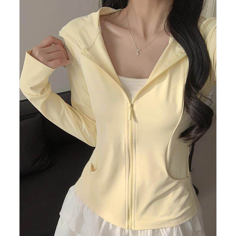 收腰薄款 户外V防晒服修身 外套上衣0325e 夏季 黄色冰丝防晒衣女款