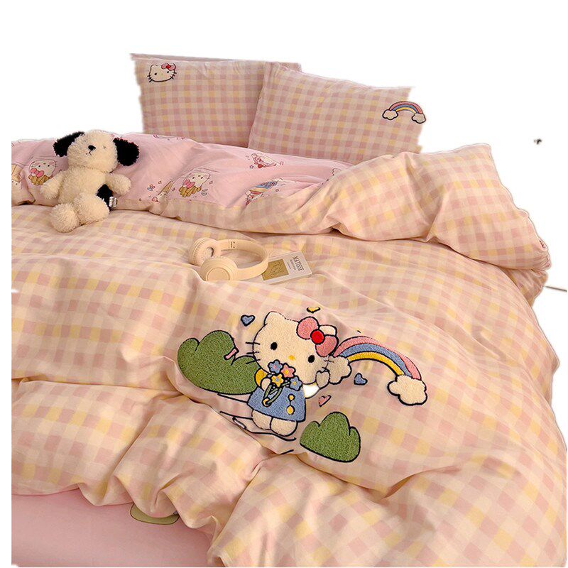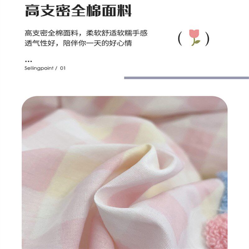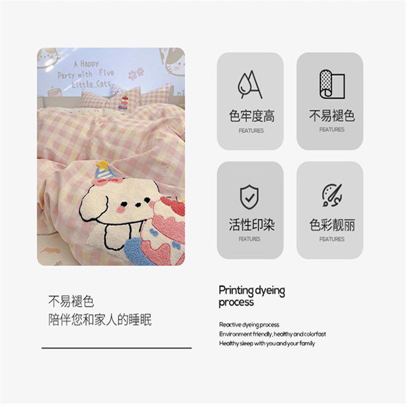 卡通纯棉四件套可爱少女心100全棉毛巾绣L被套床单儿童宿舍三件套
