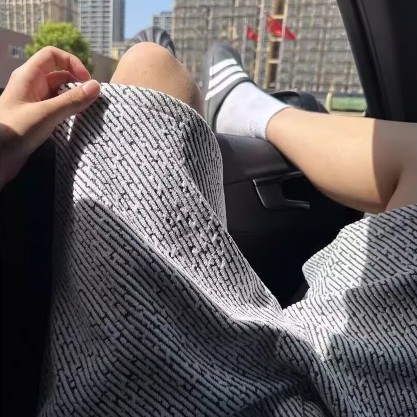 男夏季 宽松休闲运动五分裤 薄款 大码 子 沙滩中裤 褶皱肌理感胖子短裤