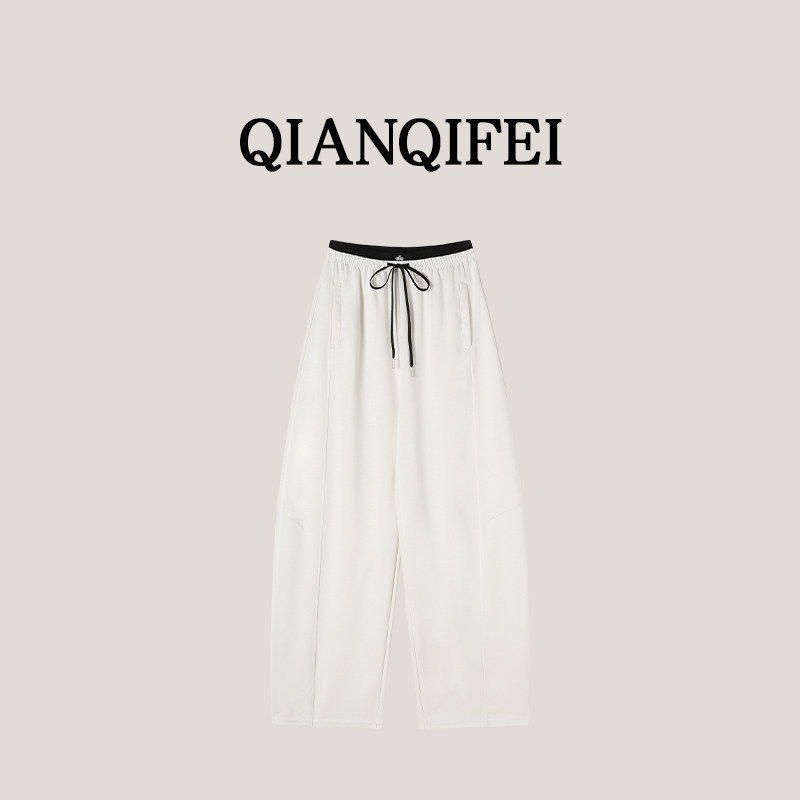 拼接撞色高腰阔腿休闲裤 云感弯刀裤 新款 668 19F