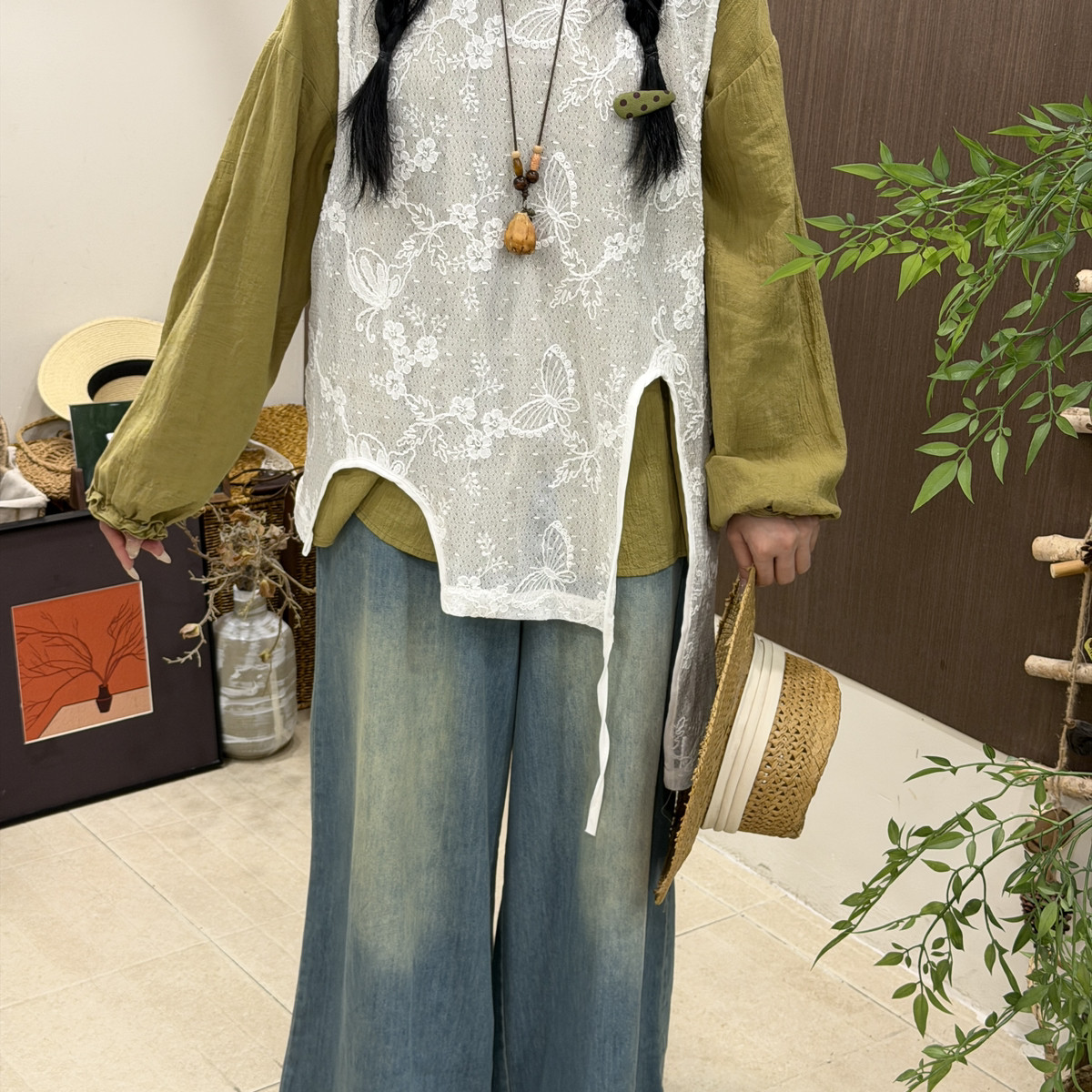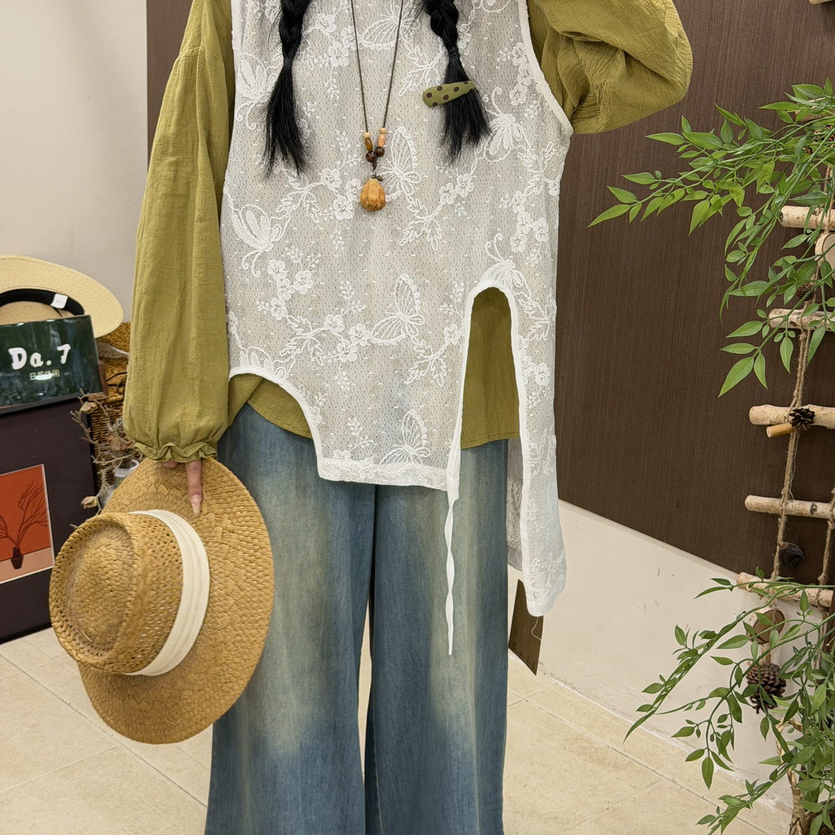 甜甜夏上新复古森系文艺叠穿背心针织马甲 7920 不含内搭