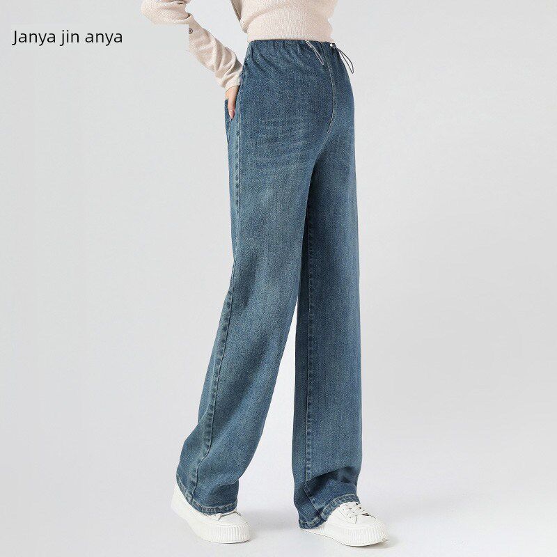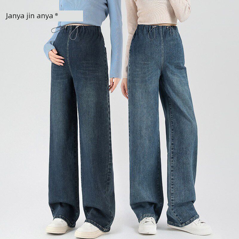 外穿小拉绳无腹部支撑直拖地裤 孕妇阔腿牛仔裤 和秋季 春季 2025新款