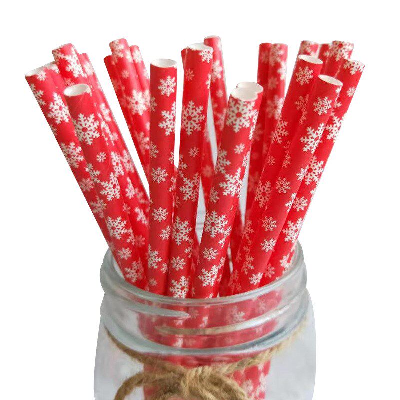 Straws Paper Snowflake Drinking Merry 25pcs Straw Christmas