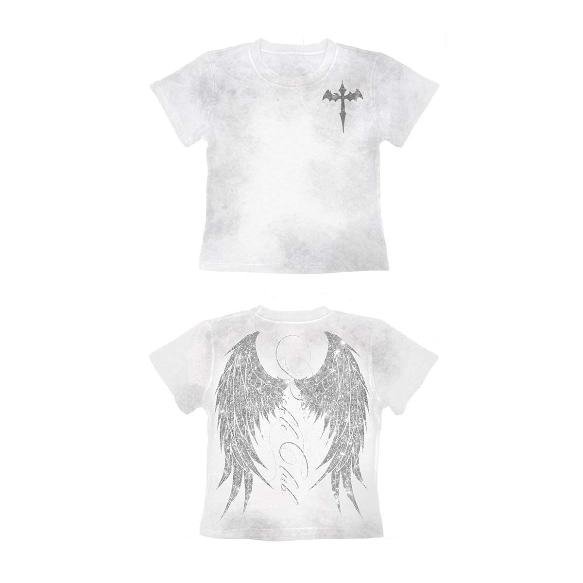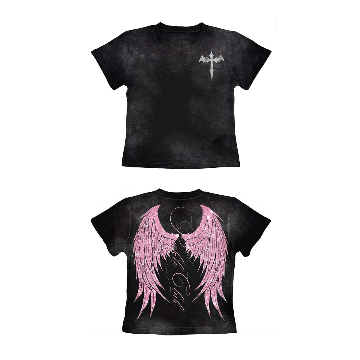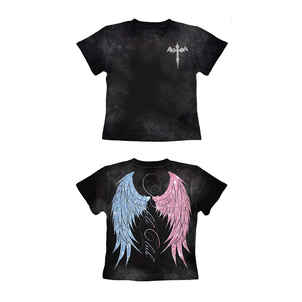 男女休闲百搭短袖 闪光天使翅膀做旧水洗短袖 上衣 天使 梁拌泡菜