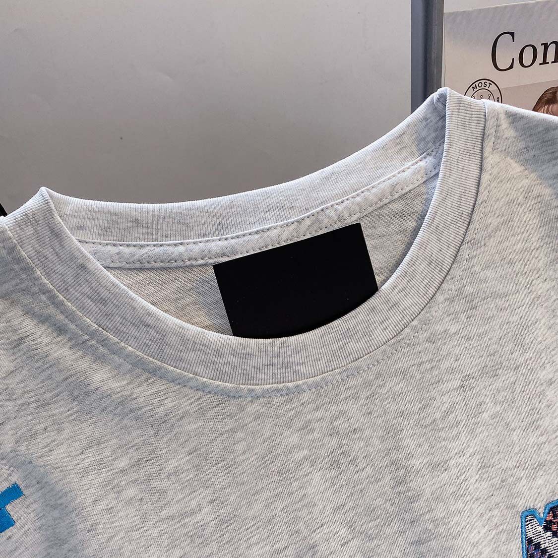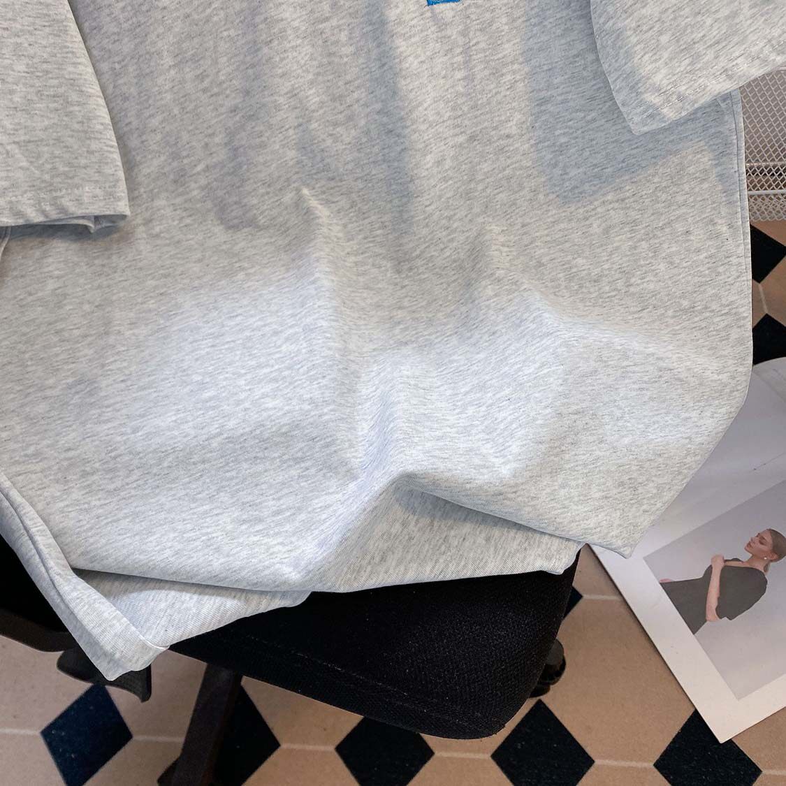 上衣 高街潮牌情侣宽松百搭半袖 重磅白灰色字母刺绣短袖 T恤男夏季