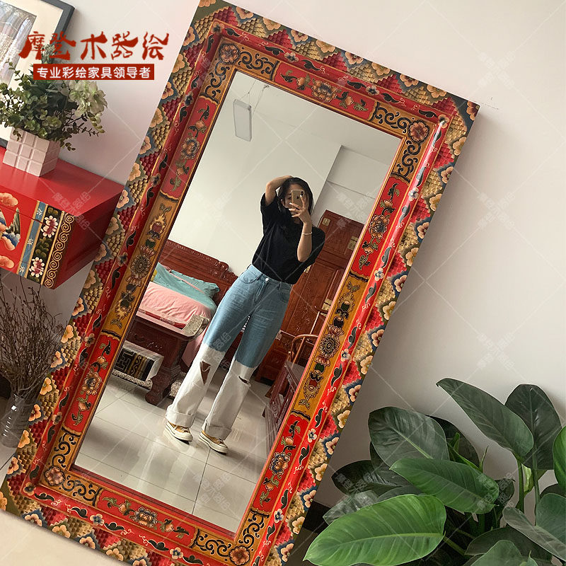 这款 家具镜子试衣镜化妆镜正容镜穿衣贴墙镜唐卡框 真是太美了藏式