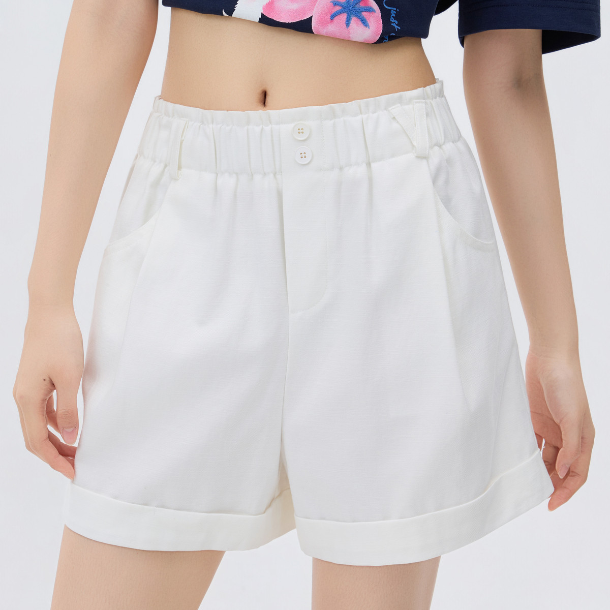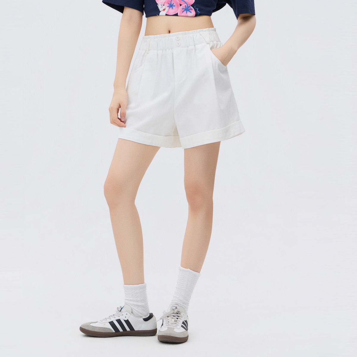 莱赛尔高腰裤 商场同款 新款 女26年夏季 子 北欧时刻简约休闲白色短裤