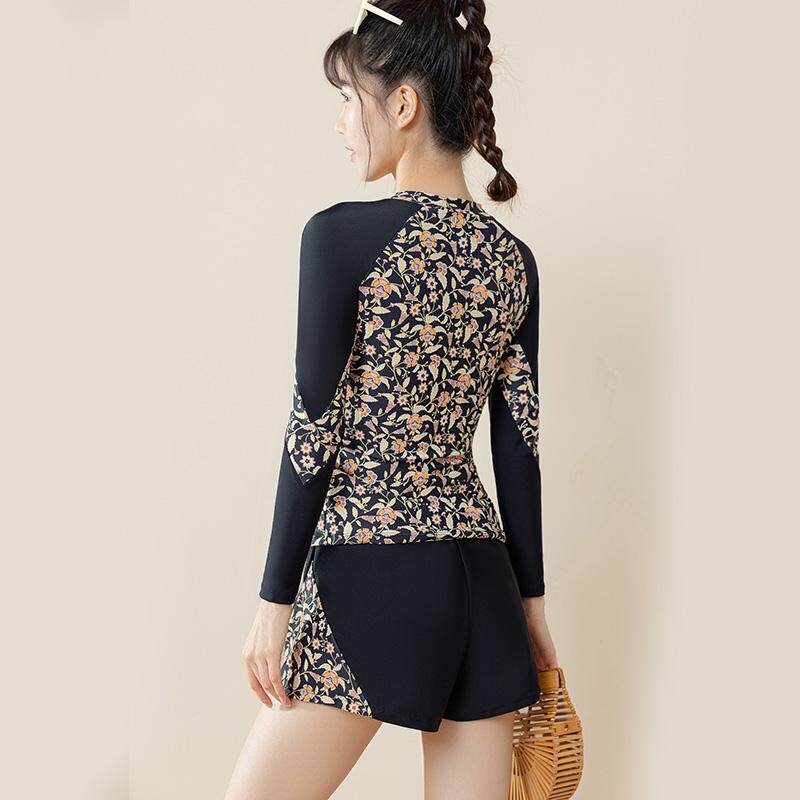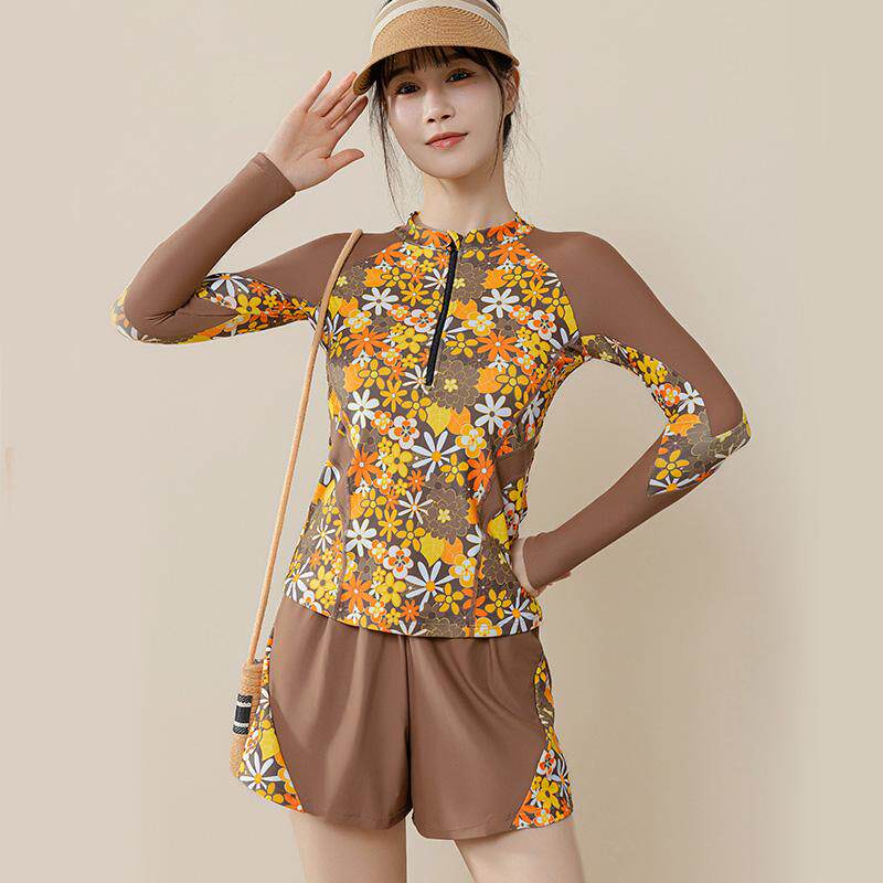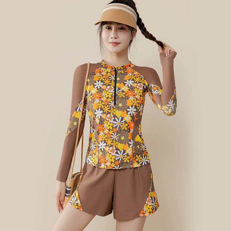 防晒平角分体泳装 泳衣女大码 游泳馆专用微胖女孩保守遮肉显瘦长袖