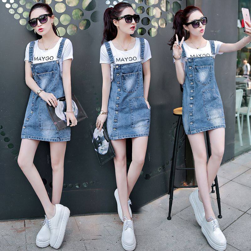 女装 牛仔连衣裙背带裙女学生韩版 新款 显瘦遮肚子短裙2023夏季 修身
