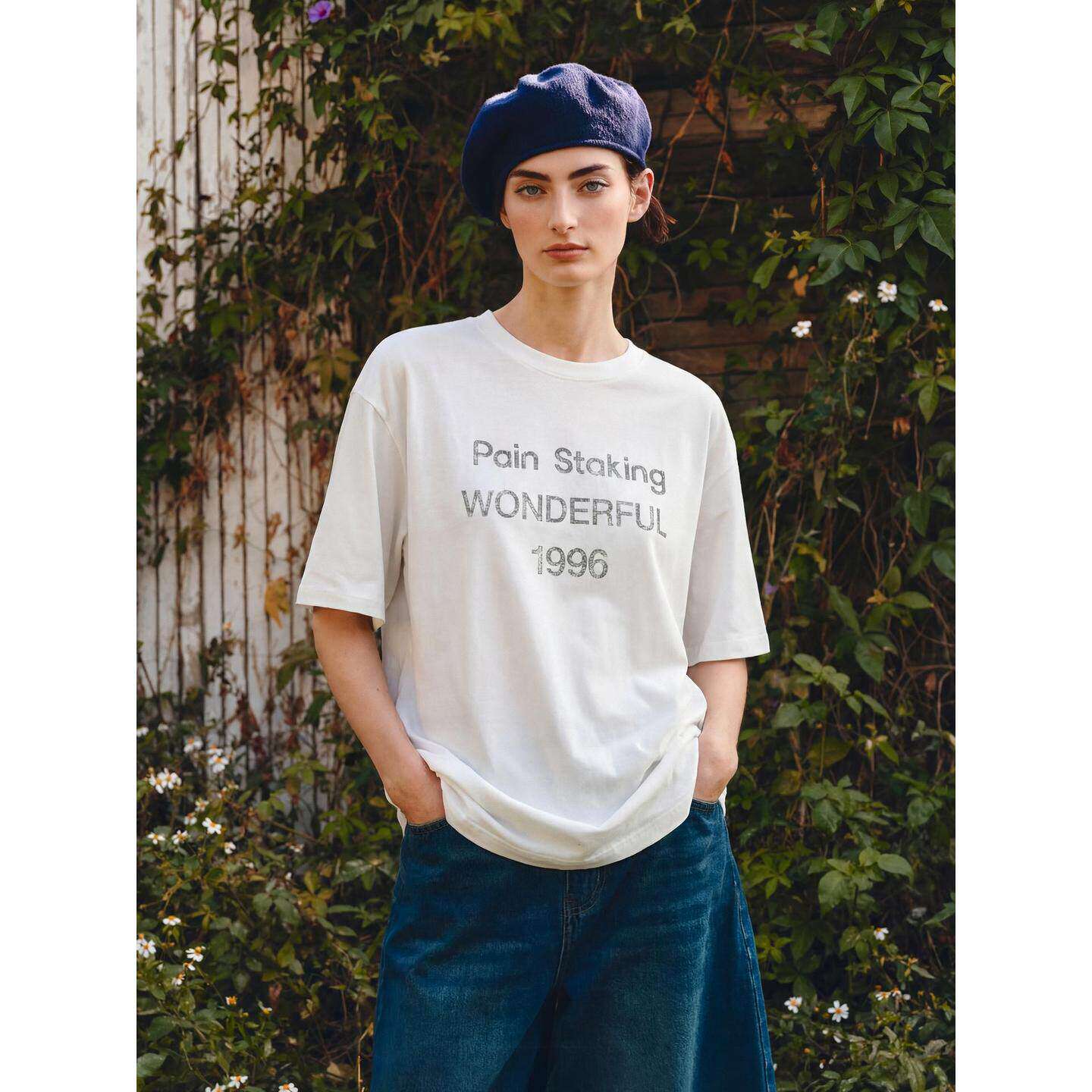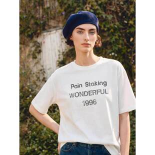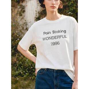 字母印花半袖 Basic T恤女夏季 百家好白色纯棉圆领短袖 上衣 House
