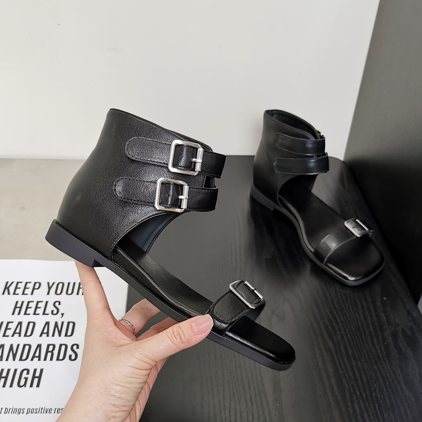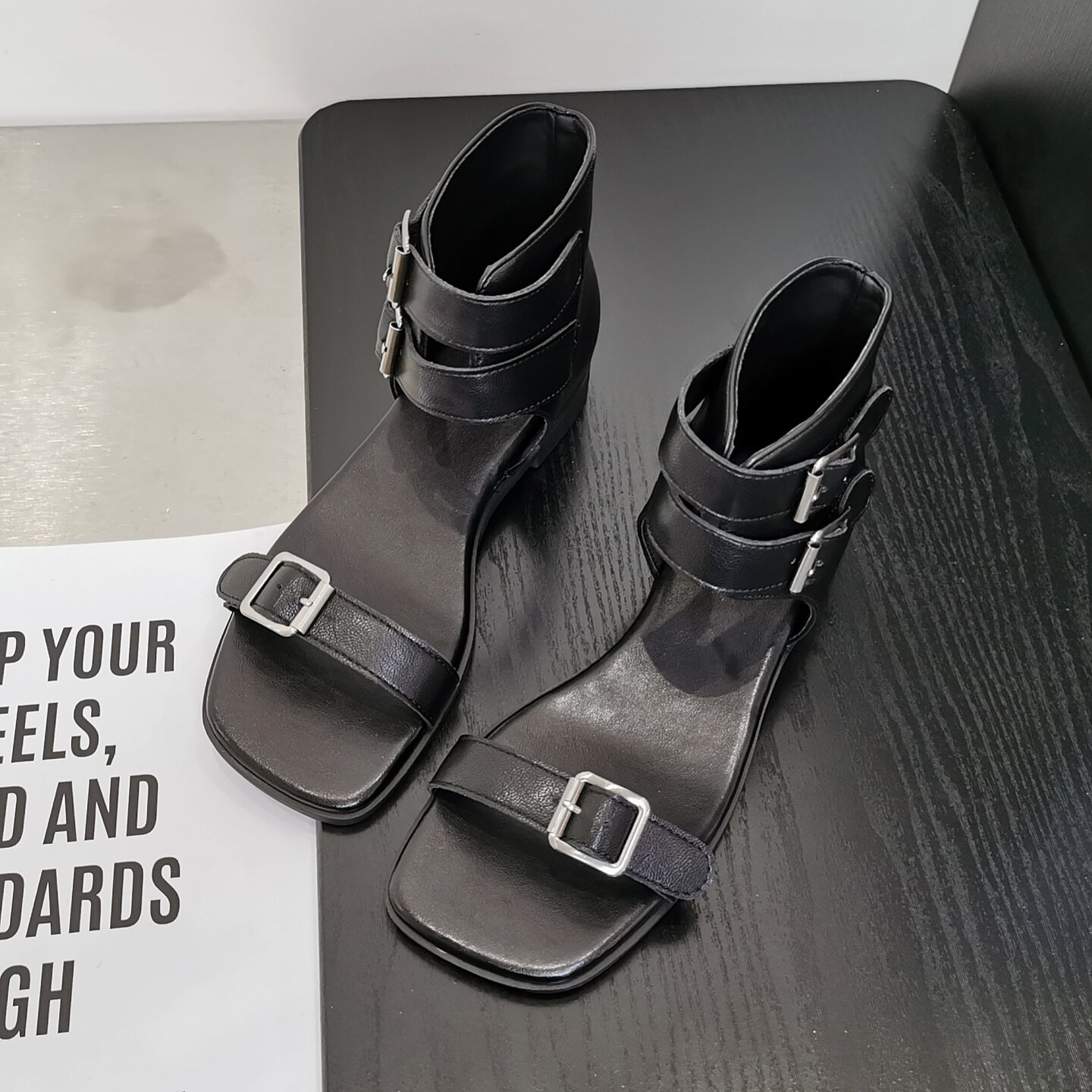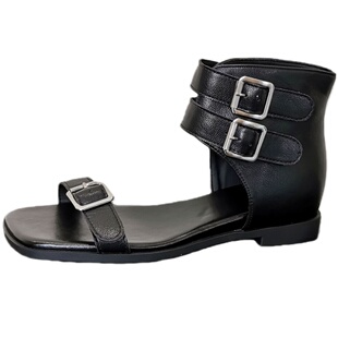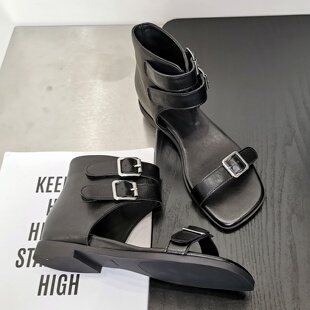 低跟高帮侧空方头百搭外穿时装 新款 靴 街头风罗马凉靴2026夏季 韩版