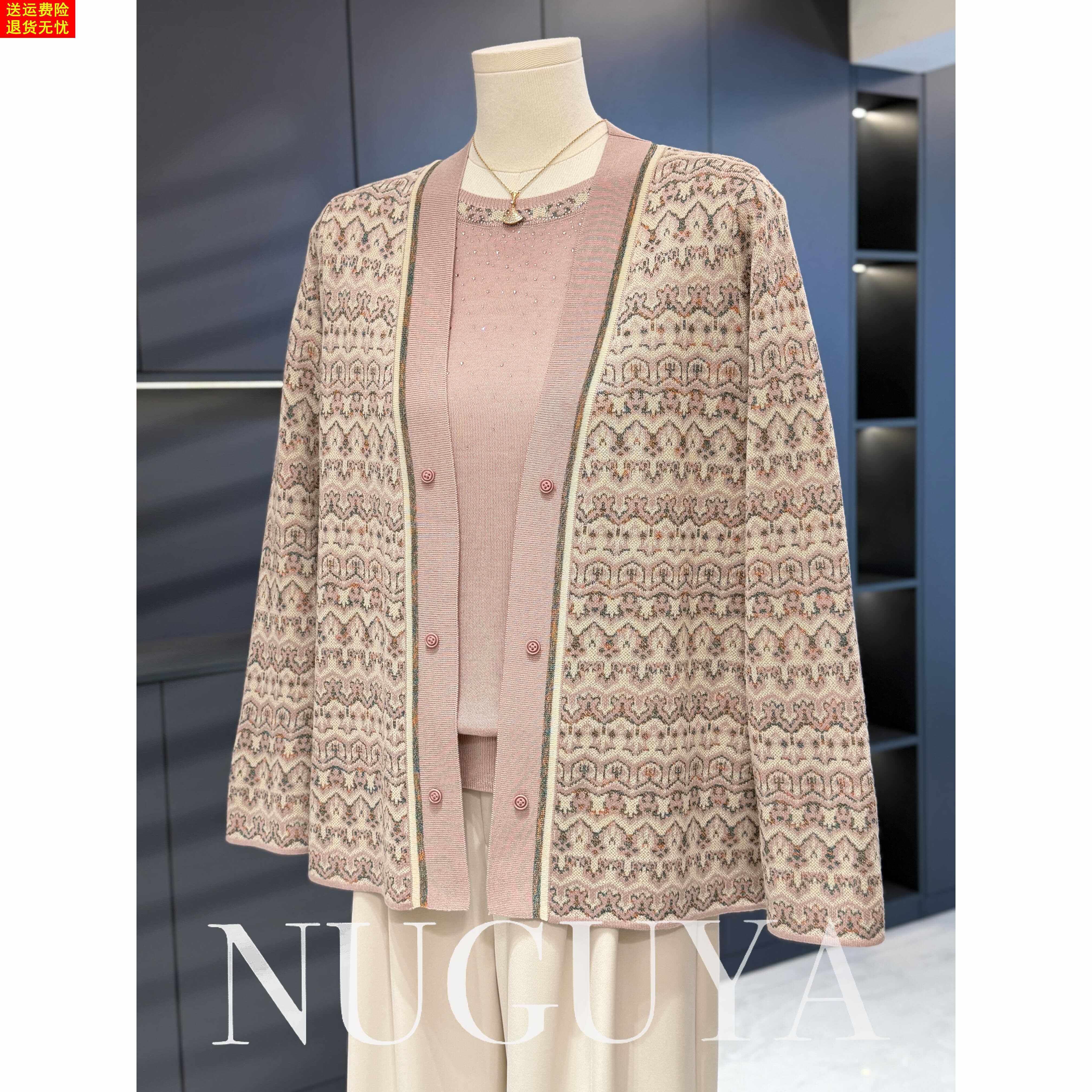 休闲妈妈针织衫 上衣气质百搭中老年套装 两件套女开衫 新款 春装 时尚