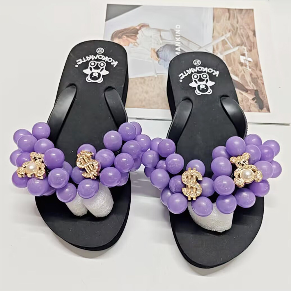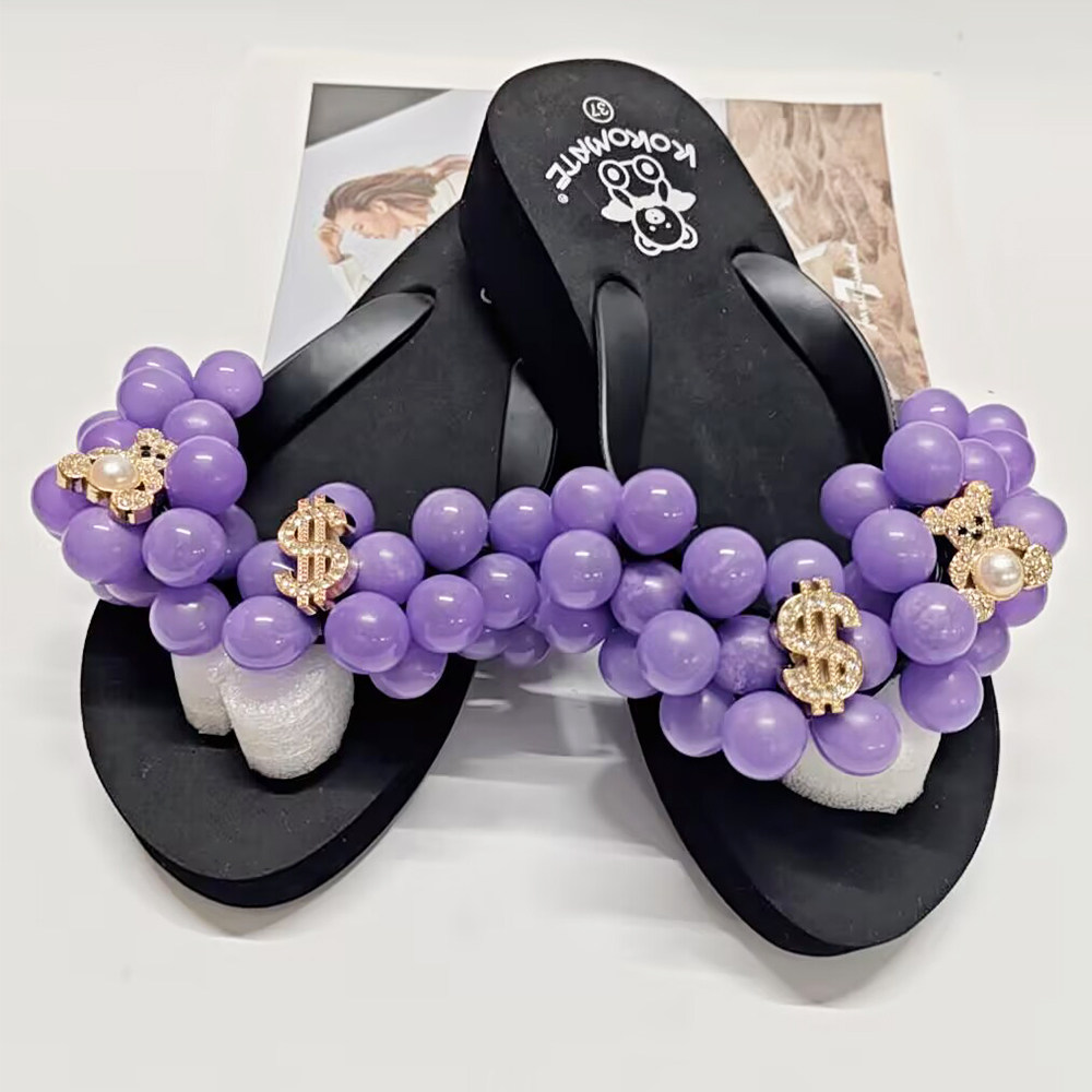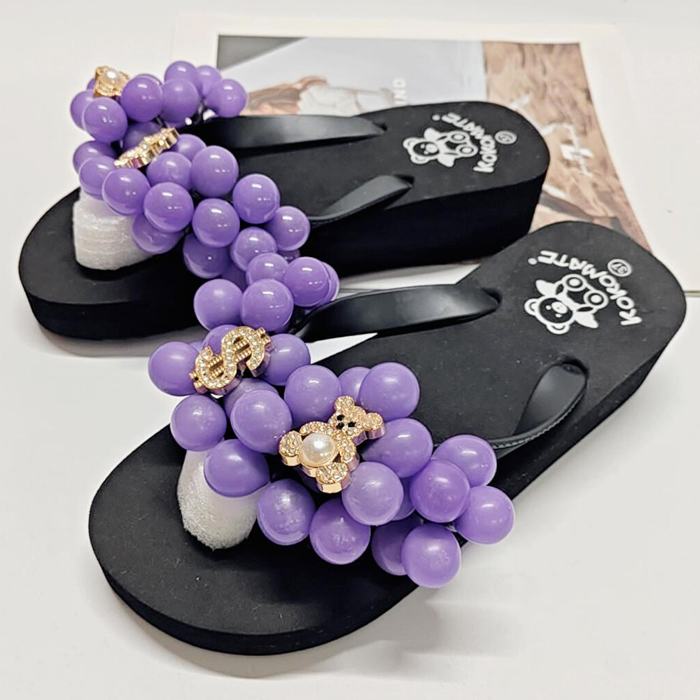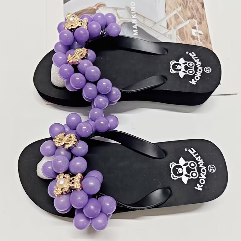舒适凉鞋 球球人字拖旅游海边沙滩度假拖鞋 甜美葡萄拖鞋 厚底沙滩鞋