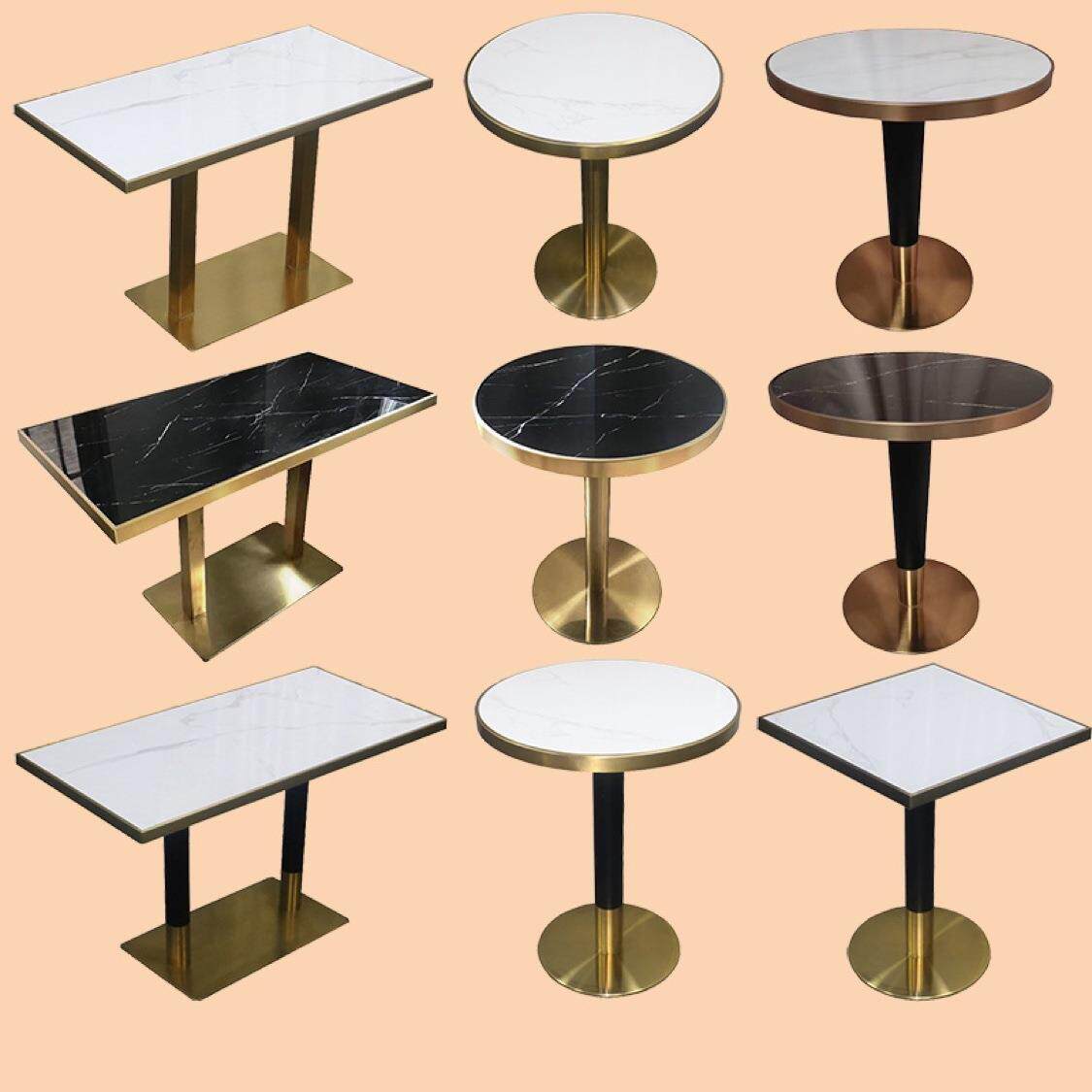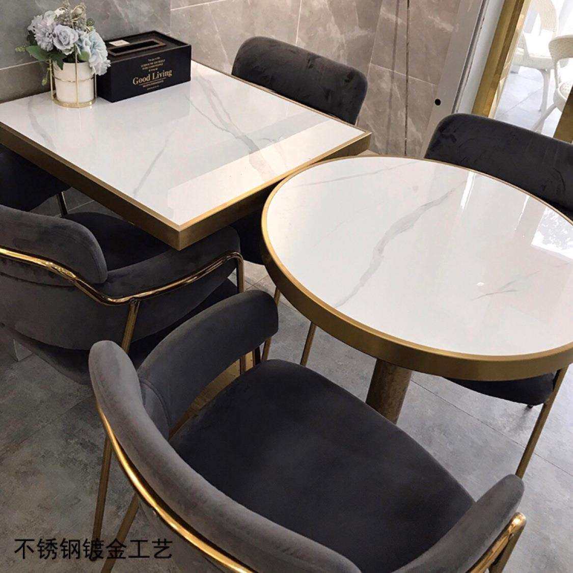 YSPPSY 不锈钢亮光岩板餐桌圆形高端家用带转 Q622洽谈桌圆台意式