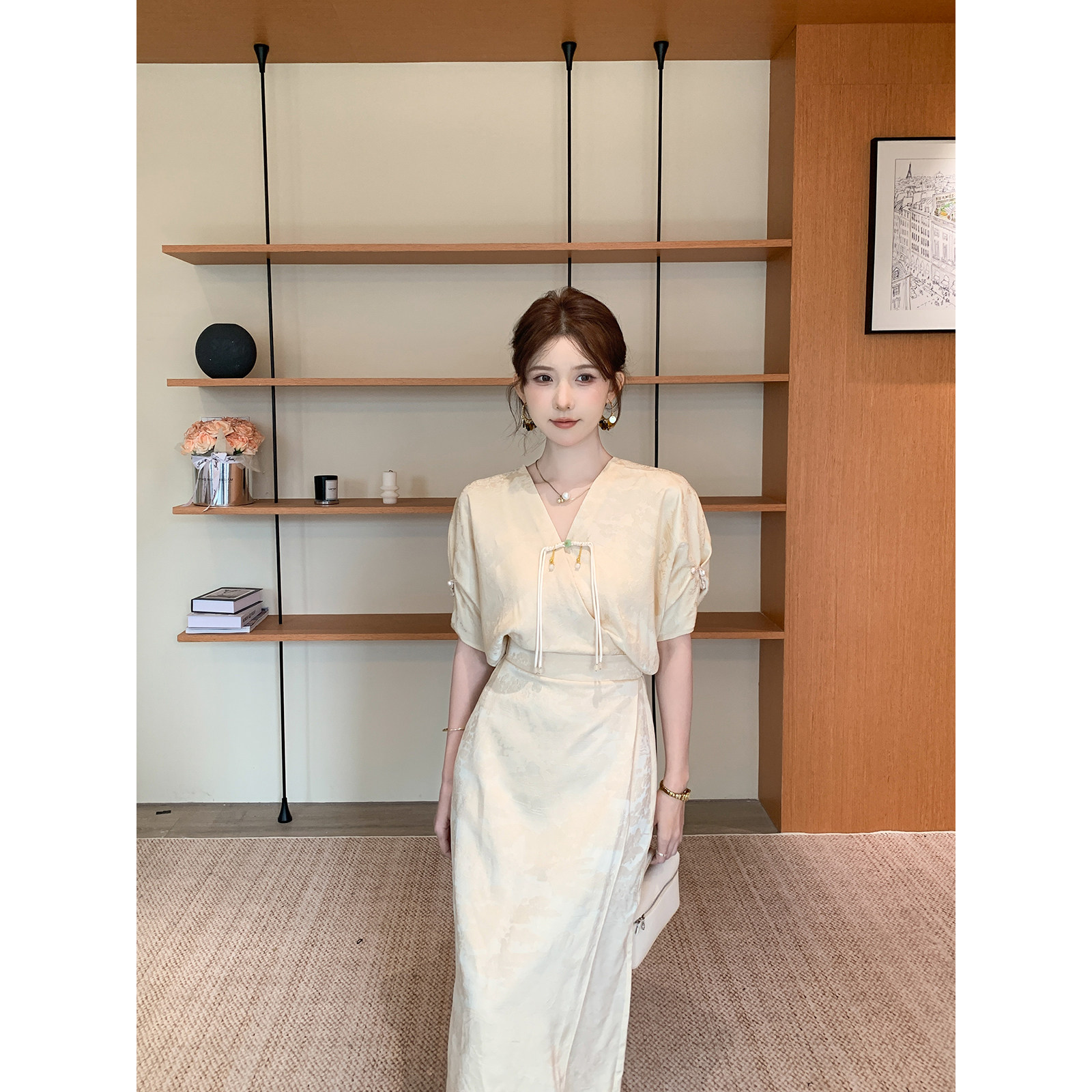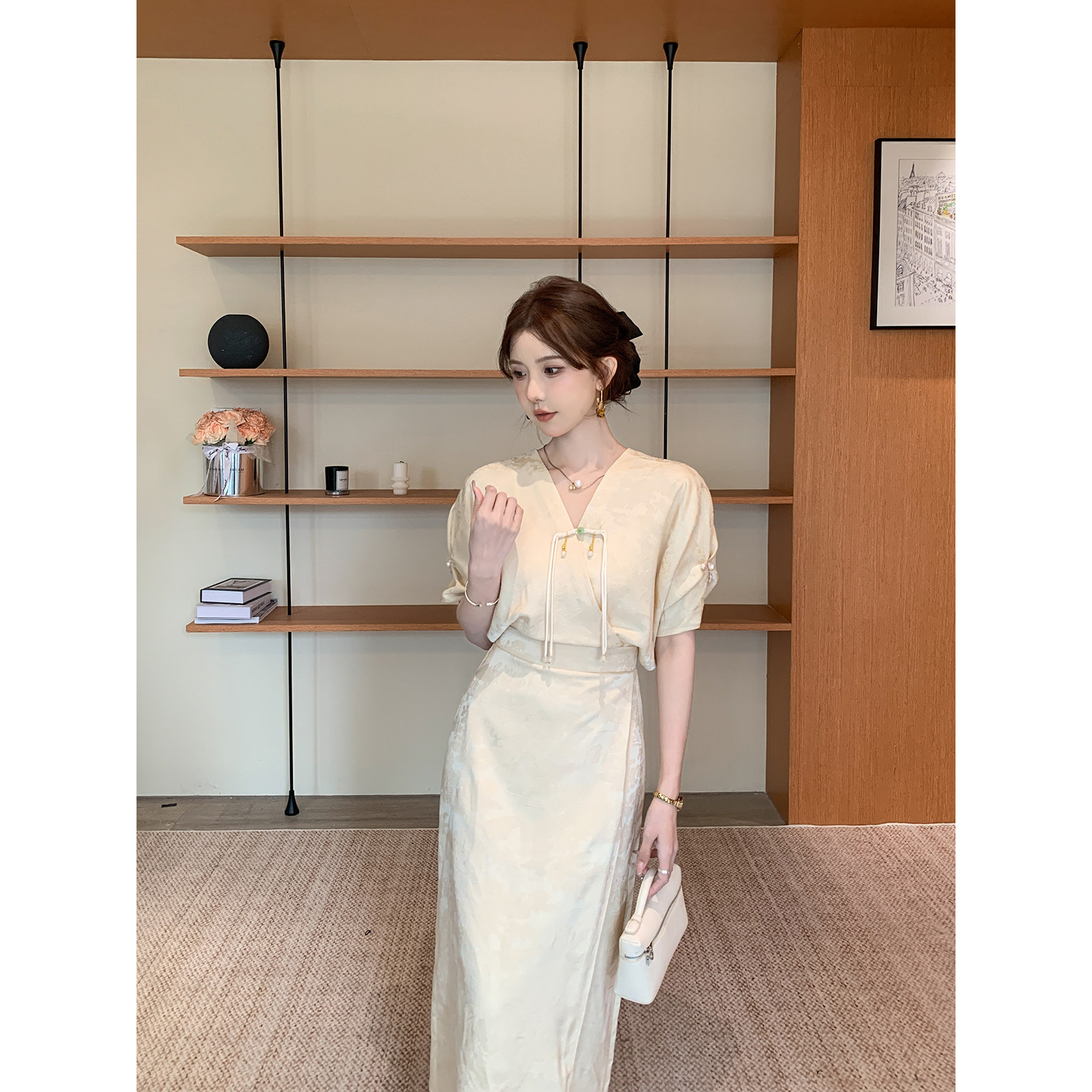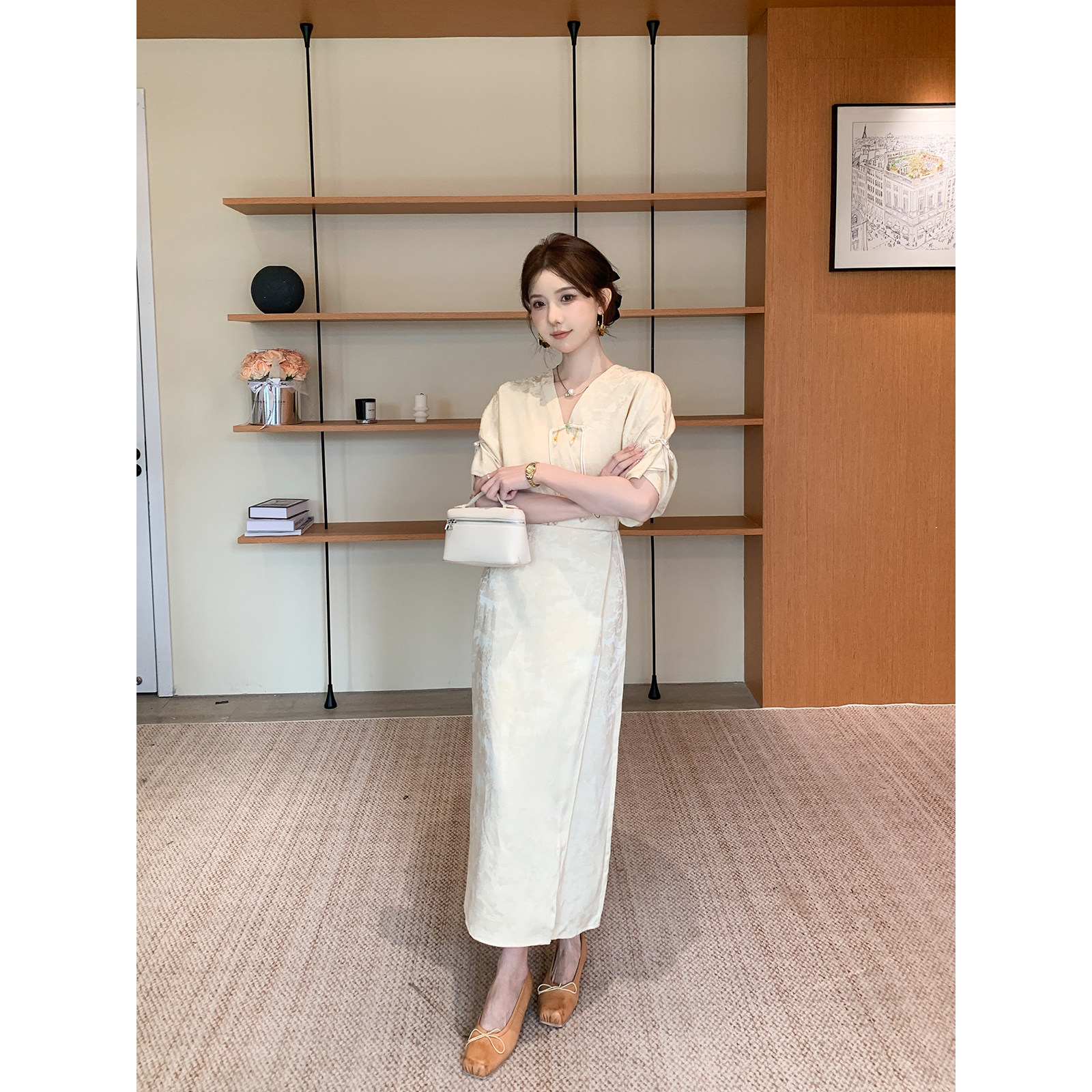 国风温柔印花V领连衣裙S726Z03757 新中式 SHAOER 烟柳画桥