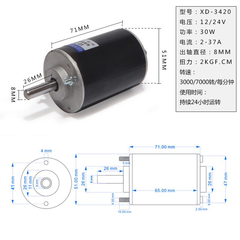 包邮 大扭矩正反马达30W 3420短轴款 12V24V直流高速调速电机微型XD