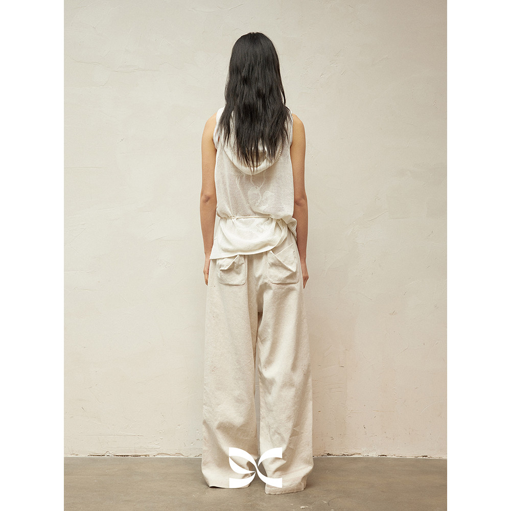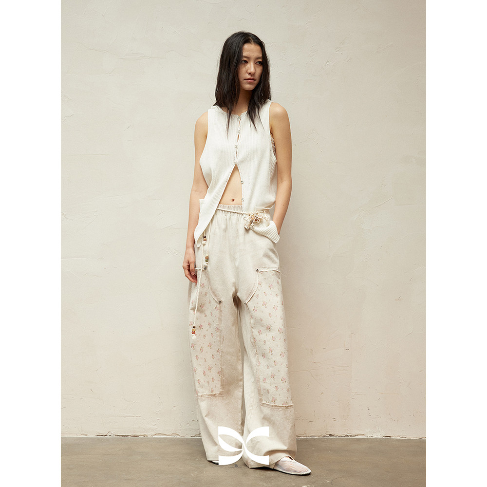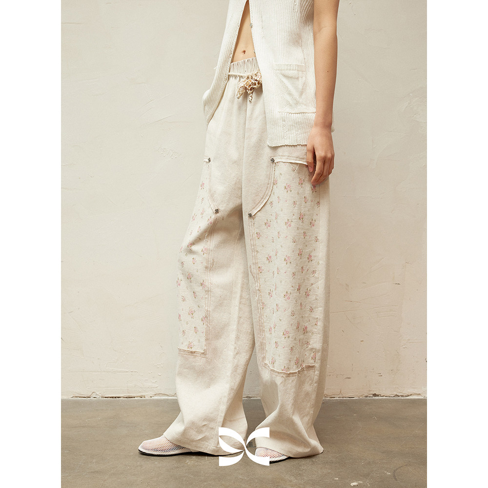 长裤 方圆印花碎花拼接毛边铆钉街头感松紧腰工装 CIRCLE SQUARE