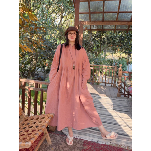 VOGANA戛纳家大码 日系挚简裙休闲松弛老钱风宽松收腰连衣裙 女装